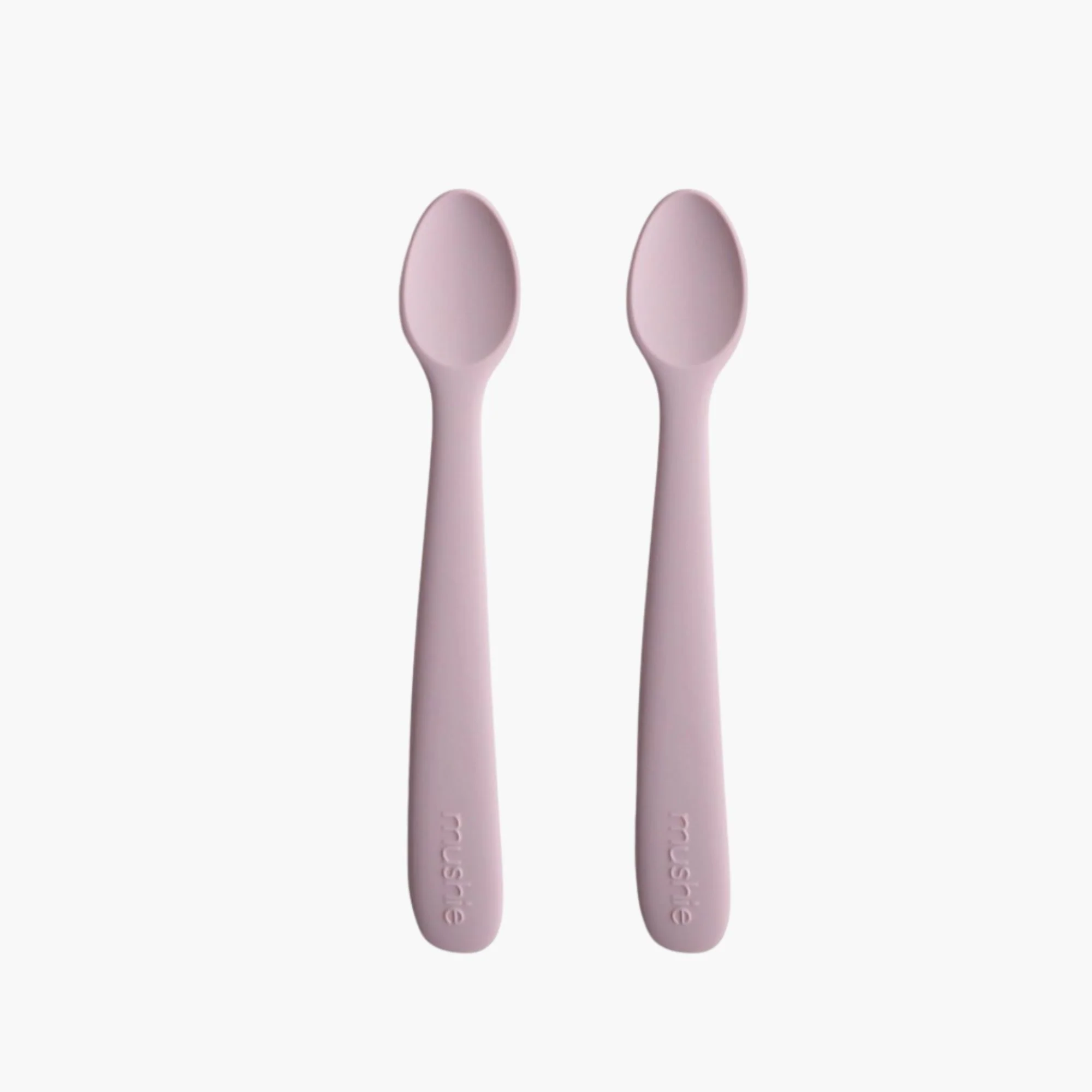 Ces 2 cuillères en silicone sont idéales pour nourrir votre bébé. La pointe est douce, protégeant ainsi les gencives sensibles du tout-petit, ce qui rend le repas plus facile et plus agréable. Lot de 2 cuillères. Ne convient pas au micro-ondes. Mushie