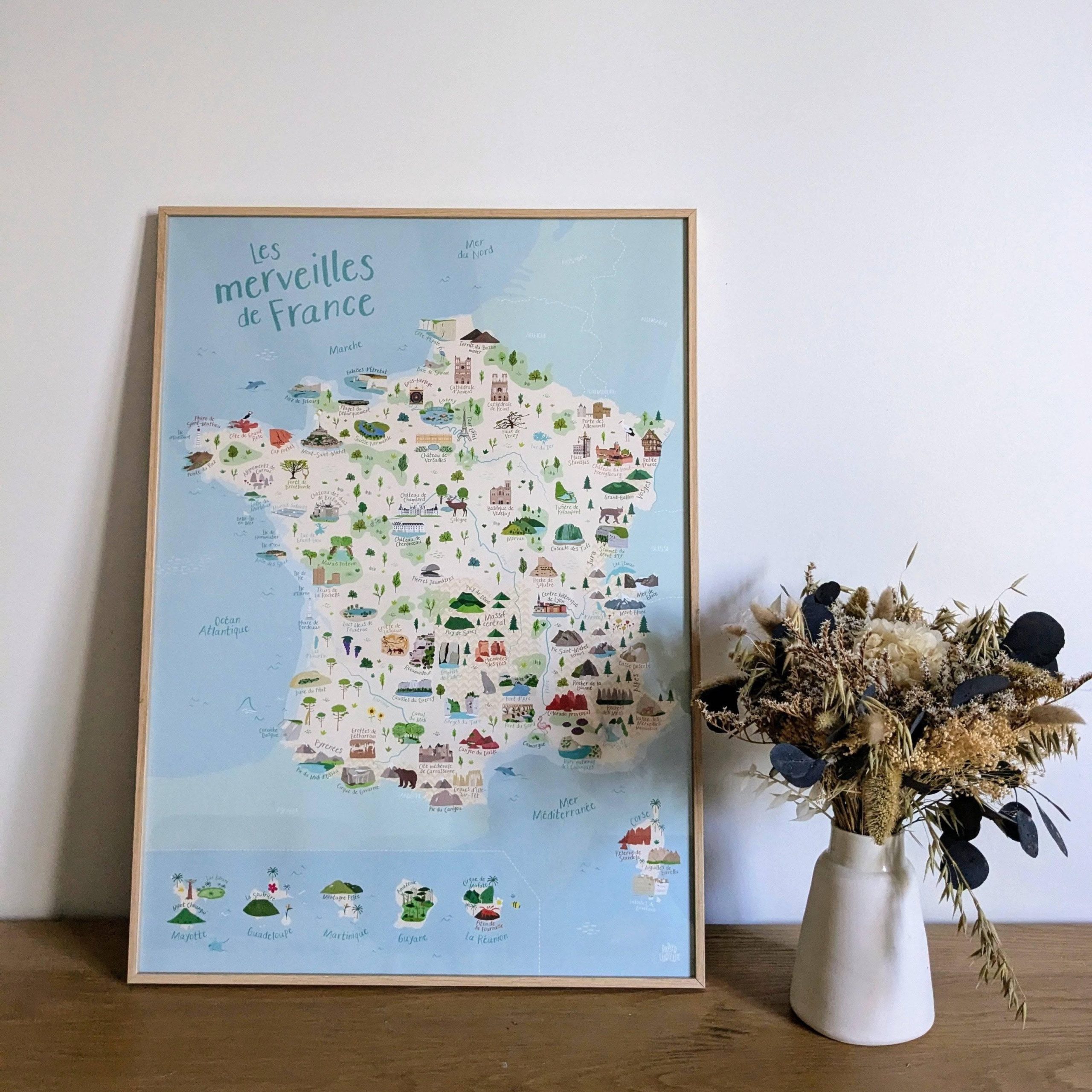 Affiche carte de France – les merveilles de France