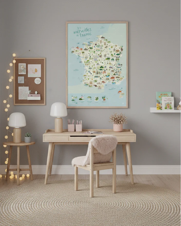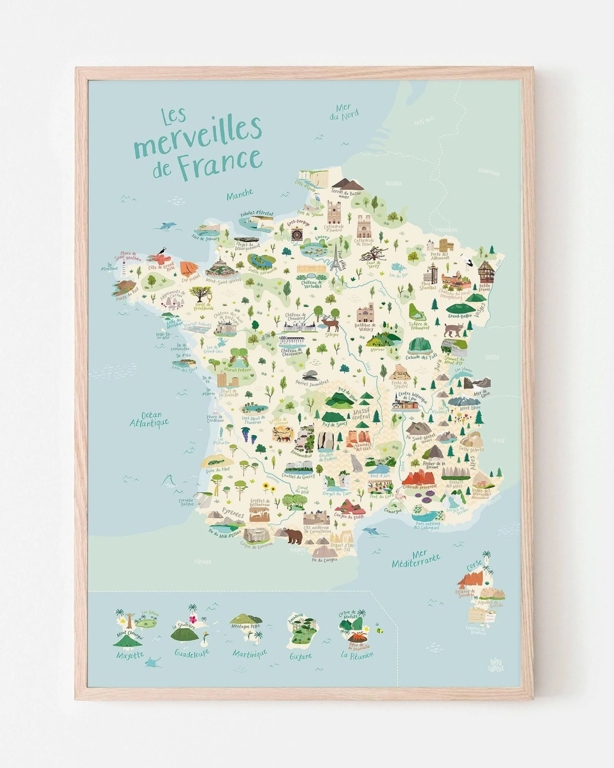 Explorez la France en 86 merveilles illustrées grâce à cette jolie affiche ludique ! On découvre le nom et l’emplacement des incontournables de la France : montagnes, volcans, châteaux, fleuves, îles d’outre-mer et pays limitrophes…