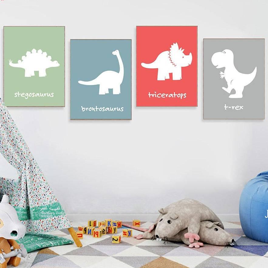 Votre petit gars est fan de dinosaures ? Ces affiches seront parfaites pour une jolie déco ! Impression sur toile.