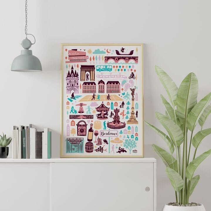 Plongez au cœur de l’histoire et de la beauté de Bordeaux avec cette magnifique affiche de l’illustratrice Marillon The Beef !