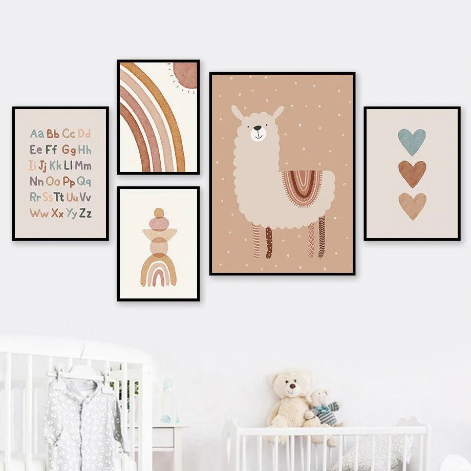 Des motifs épurés et des tons terracotta très tendances pour cette série d’affiches qui apporteront beaucoup de gaieté à une chambre d’enfant.