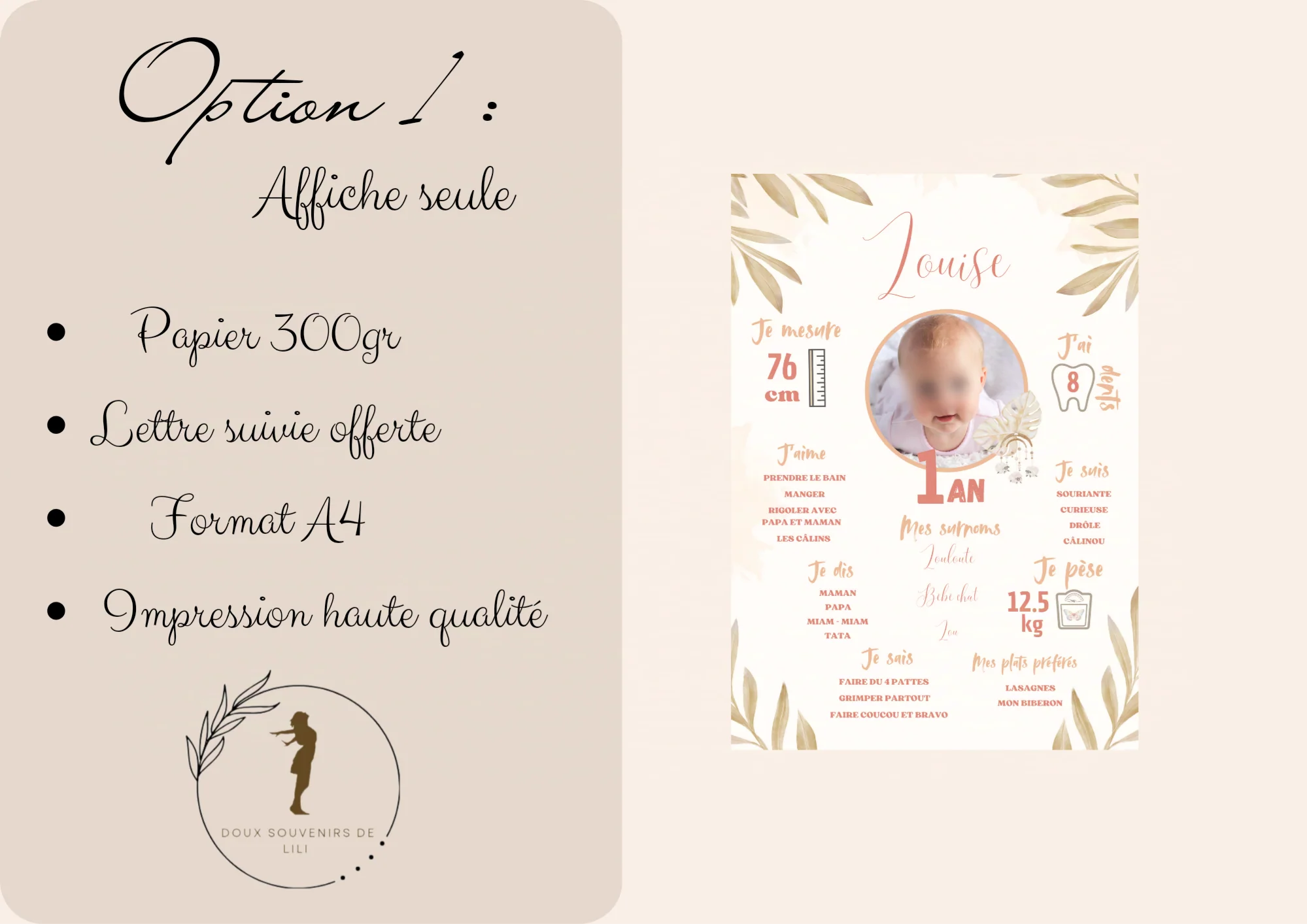 🌸 Je vous propose une affiche personnalisée avec le prénom de votre bébé pour son anniversaire ou baptême.