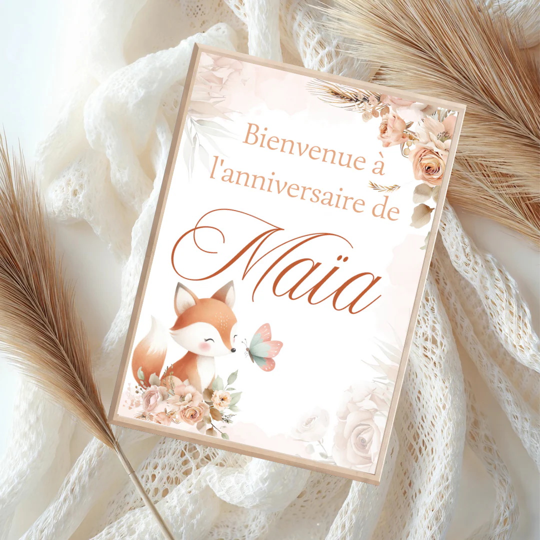 Affiche personnalisée anniversaire biche et roses