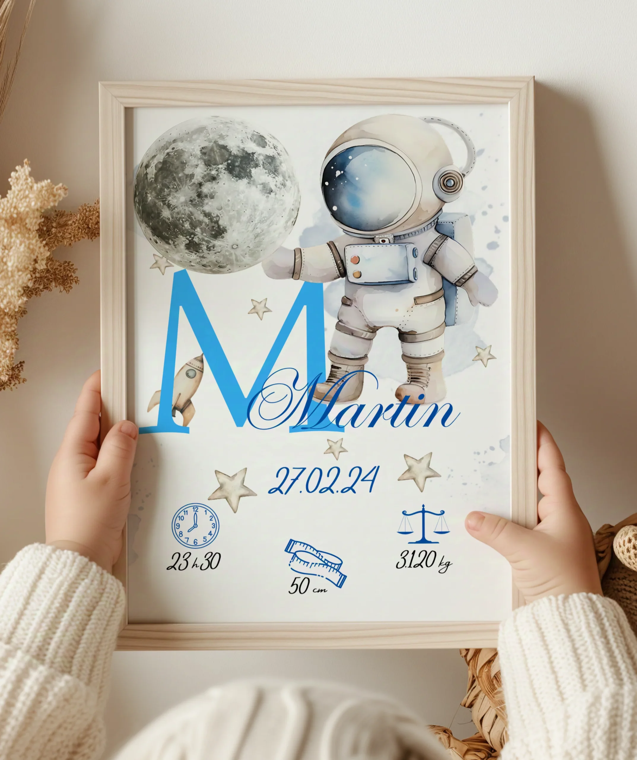 – Offrez à votre enfant ou à de nouveaux parents un souvenir unique et plein de tendresse. Chaque affiche est une création poétique réalisée avec soin dans mon atelier. Qu’il s’agisse de célébrer une naissance, un baptême ou simplement de décorer un petit nid douillet, cette illustration personnalisée témoigne de la douceur des premiers jours de vie.