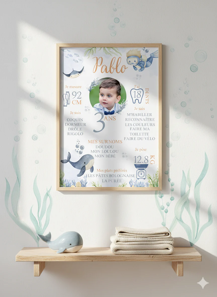 Affiche personnalisée d’anniversaire » sous l’océan «