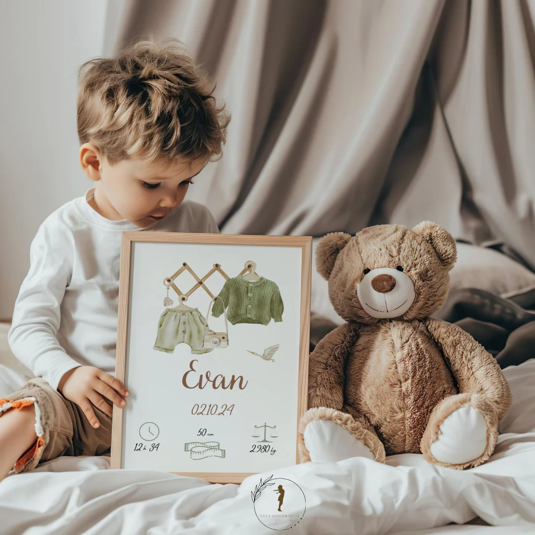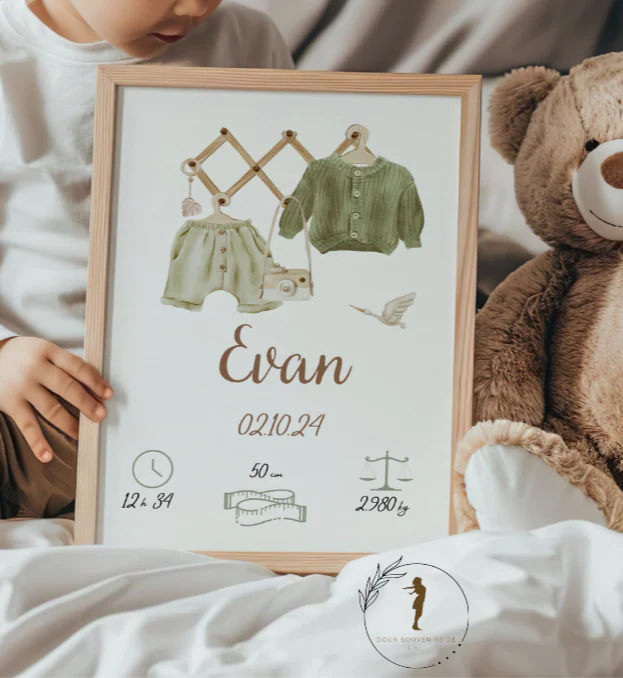 – Offrez à votre enfant ou à de nouveaux parents un souvenir unique et plein de tendresse. Chaque affiche est une création poétique réalisée avec soin dans mon atelier. Qu’il s’agisse de célébrer une naissance, un baptême ou simplement de décorer un petit nid douillet, cette illustration personnalisée témoigne de la douceur des premiers jours de vie.