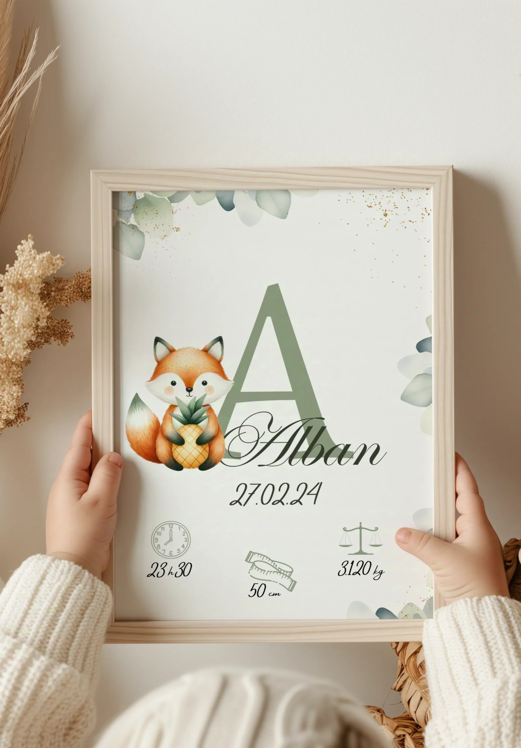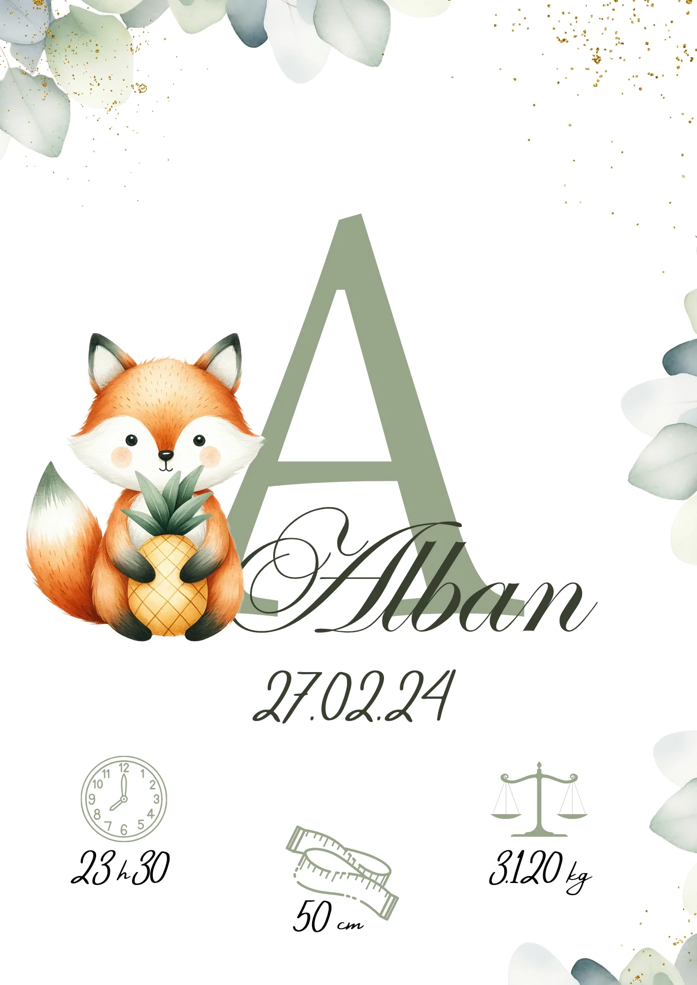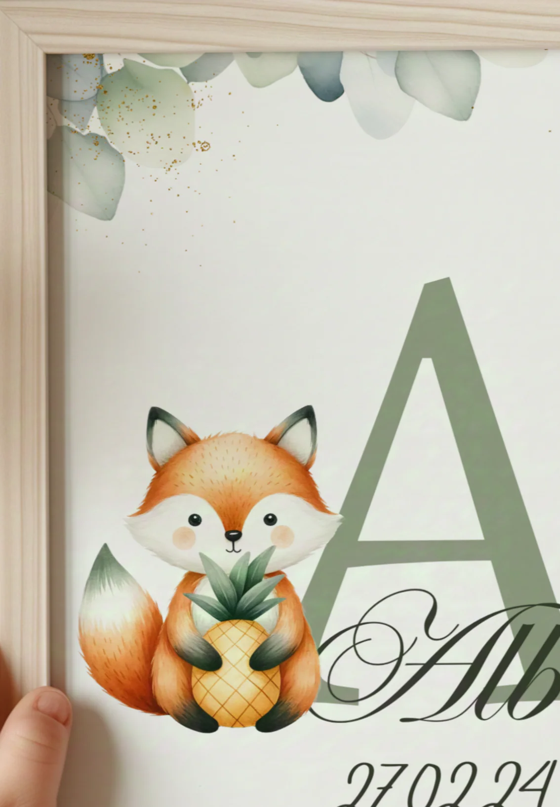 Affiche personnalisée, renard et son ananas avec eucalyptus