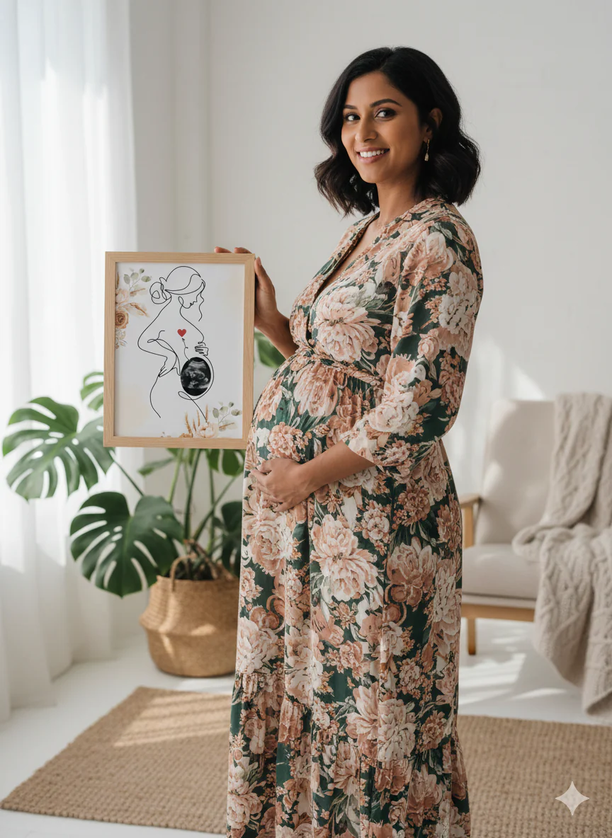 Affiche Souvenir Grossesse – Illustration Line Art avec Échographie Bébé