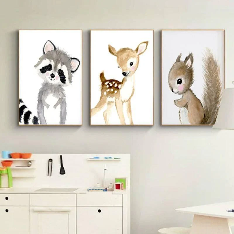 Ces adorables poster d’animaux de la forêt pour enfant décoreront à merveille une chambre.
