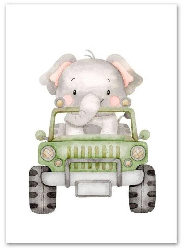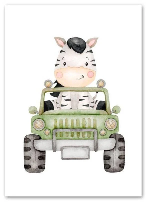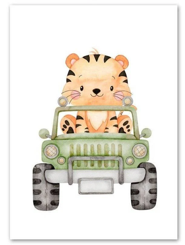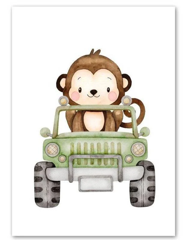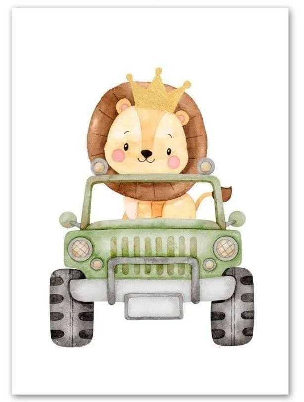Une sélection d’adorables animaux mignons en voiture apporteront de la couleur aux murs de la pièce.