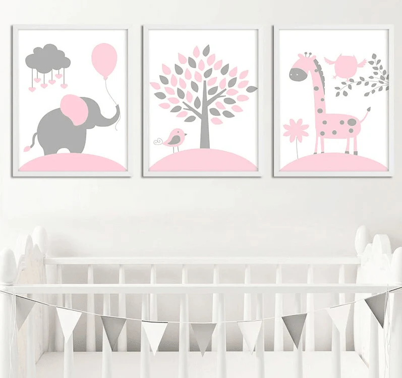 Ces adorables affiches roses et grises apporteront une jolie touche colorée à une chambre de petite fille. Impression sur toile.