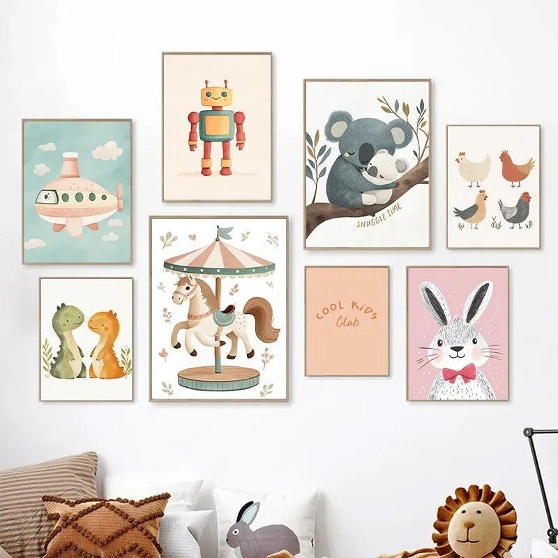 Plongez dans un univers où le charme du vintage rencontre la douceur de l’enfance. Avec leurs teintes chaleureuses et leurs design rétro, ces affiches apportent une touche de poésie et d’élégance aux chambres des tout-petits. Elles créent un décor à la fois intemporel et féerique, propice aux rêves et à l’imaginaire.