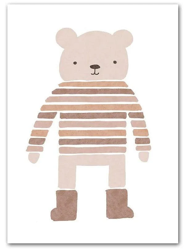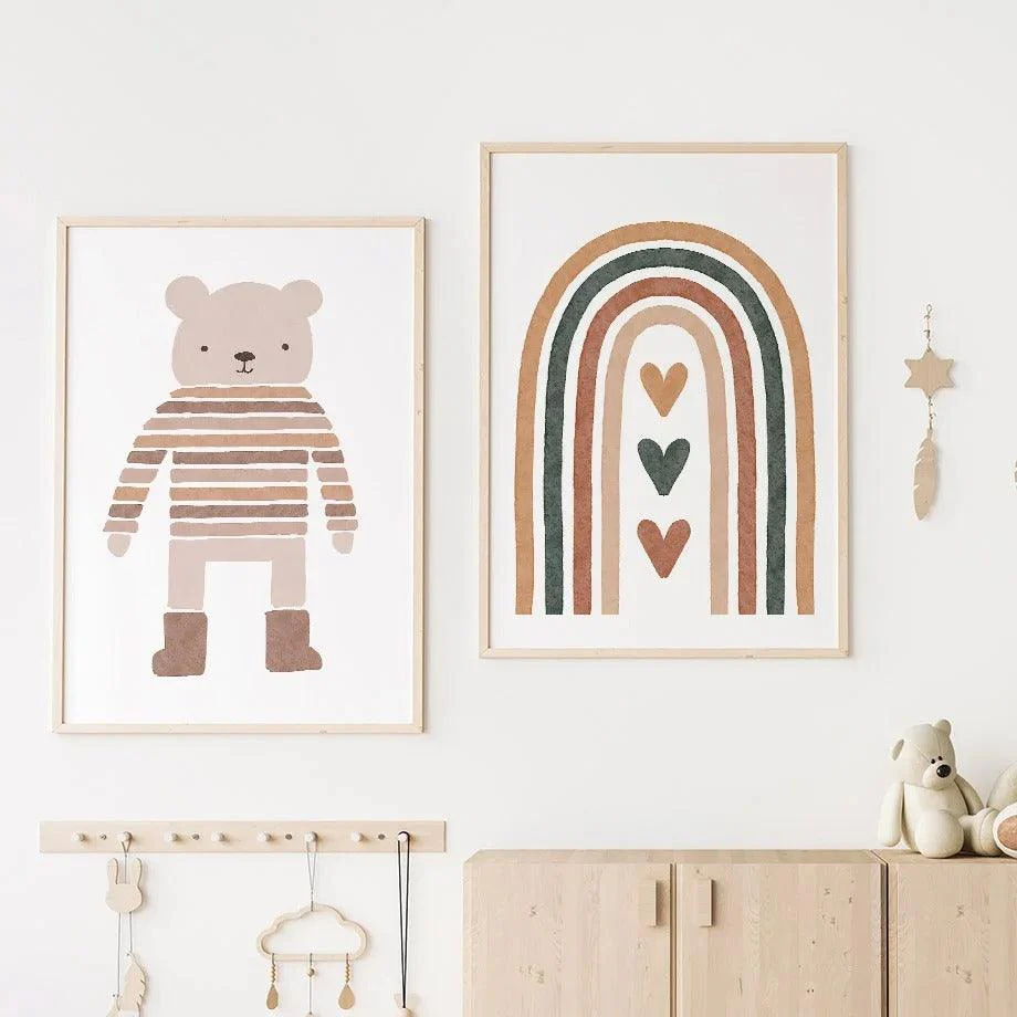 - Design original avec un ours, un lapin, un soleil et un arc en style boho.