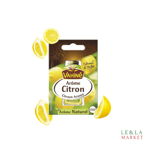 Vahiné a sélectionné cet arôme naturel de citron d’Italie pour sa qualité et son bon goût. Justement dosé et concentré, il est idéal pour parfumer et renforcer le goût de vos desserts : mousses, tartes, gâteaux. Pratique avec son bouchon verseur ! L’arôme naturel de citron Vahiné est un produit conditionné en France. 1/2 à 1 cuillère à café pour parfumer 500g ou 1/2l de préparation. Huile de tournesol, huiles essentielles de citron. A conserver à l’abri de la lumière, de la chaleur et de l’humidité. Après ouverture, conservez refermé au réfrigérateur et consommez avant la date limite indiquée sur l’emballage. Arôme alimentaire non destiné à être ingéré en l’état. A diluer dans votre préparation. Ne pas verser l’arôme dans un récipient placé sur le feu. Ne pas incorporer à des boissons car l’huile contenue dans cet arôme naturel de citron ne se diluerait pas.