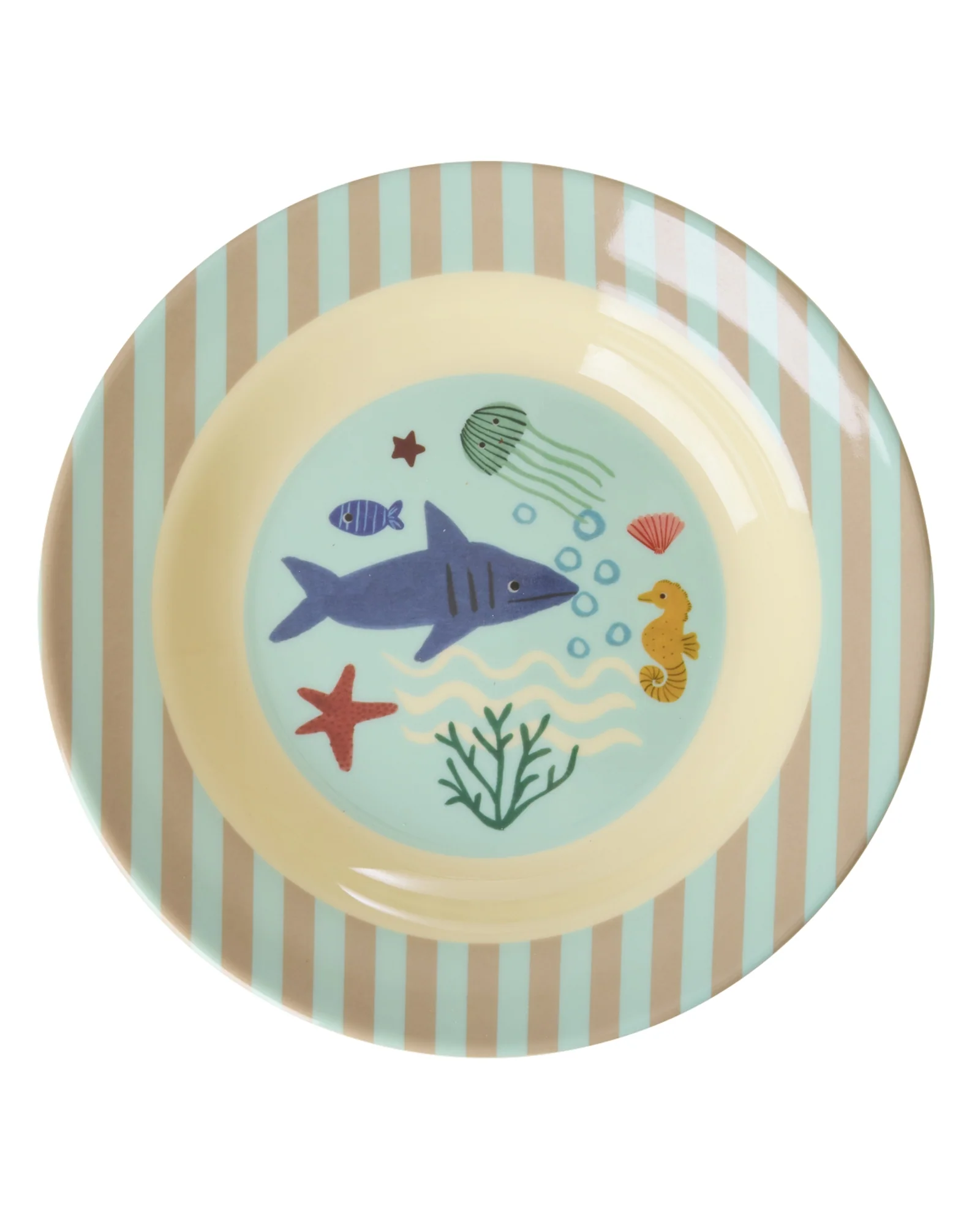 - Assiette Creuse Mélamine Requin – Thème Océan Bleu – RICE