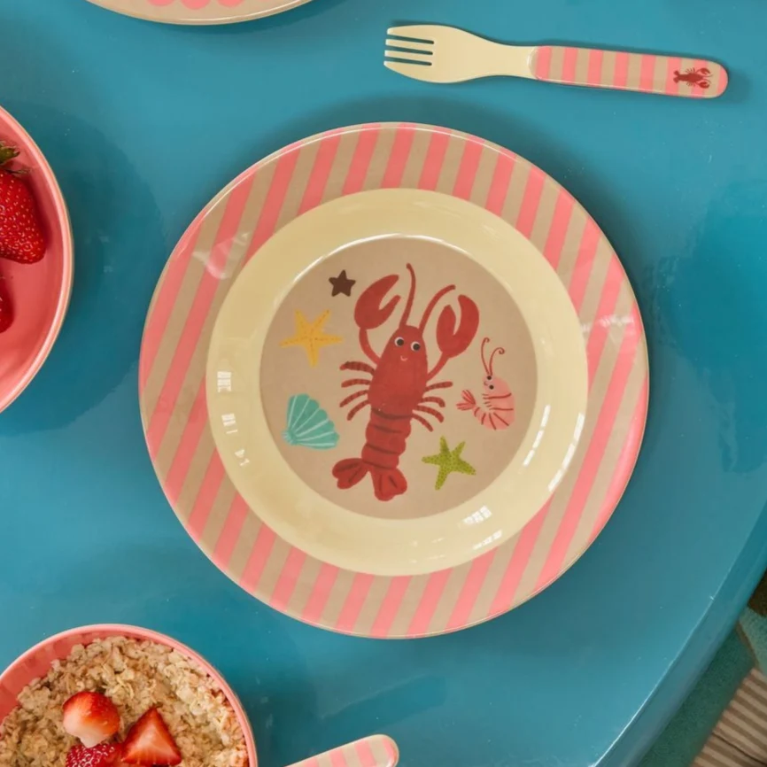 - Assiette Creuse Mélamine Homard – Thème Océan Rose – RICE