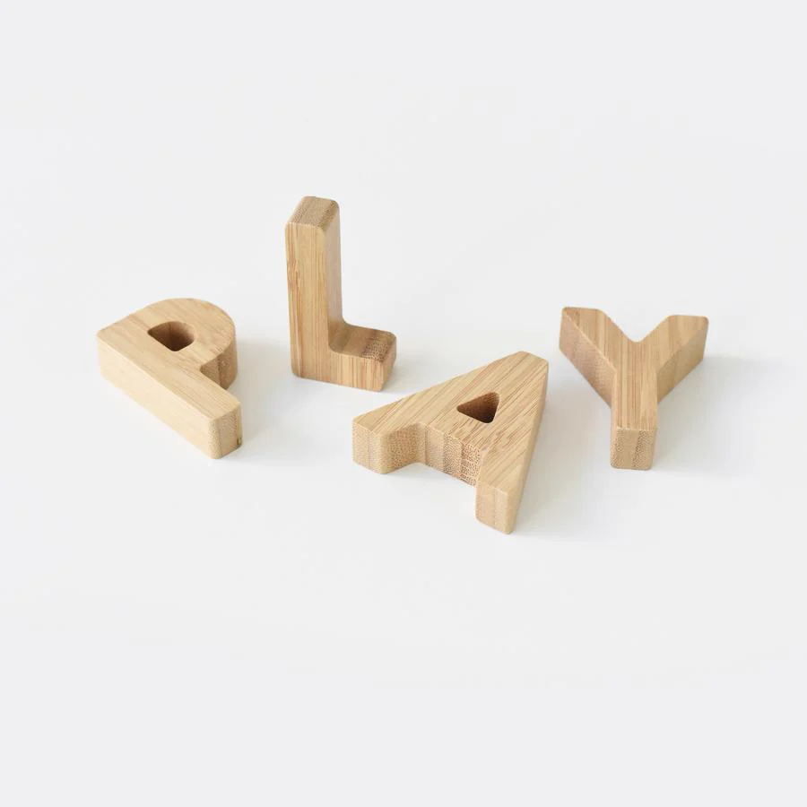 Le nouvel alphabet en bambou durable et magnifique offre un moyen tactile d’explorer les lettres avec des pièces robustes qui résistent au jeu. Associez-le à des cartes alphabétiques ou à des objets pour représenter les sons des lettres pour une expérience bien équilibrée. Pour les 3 ans et plus. Wee Gallery.