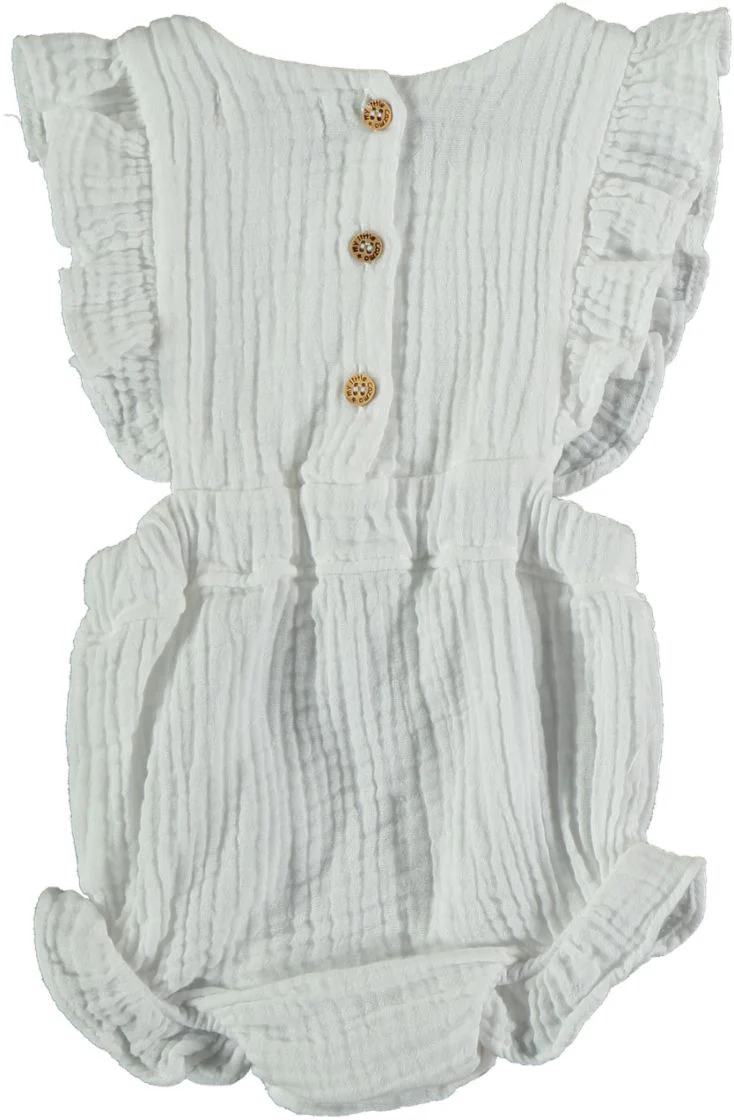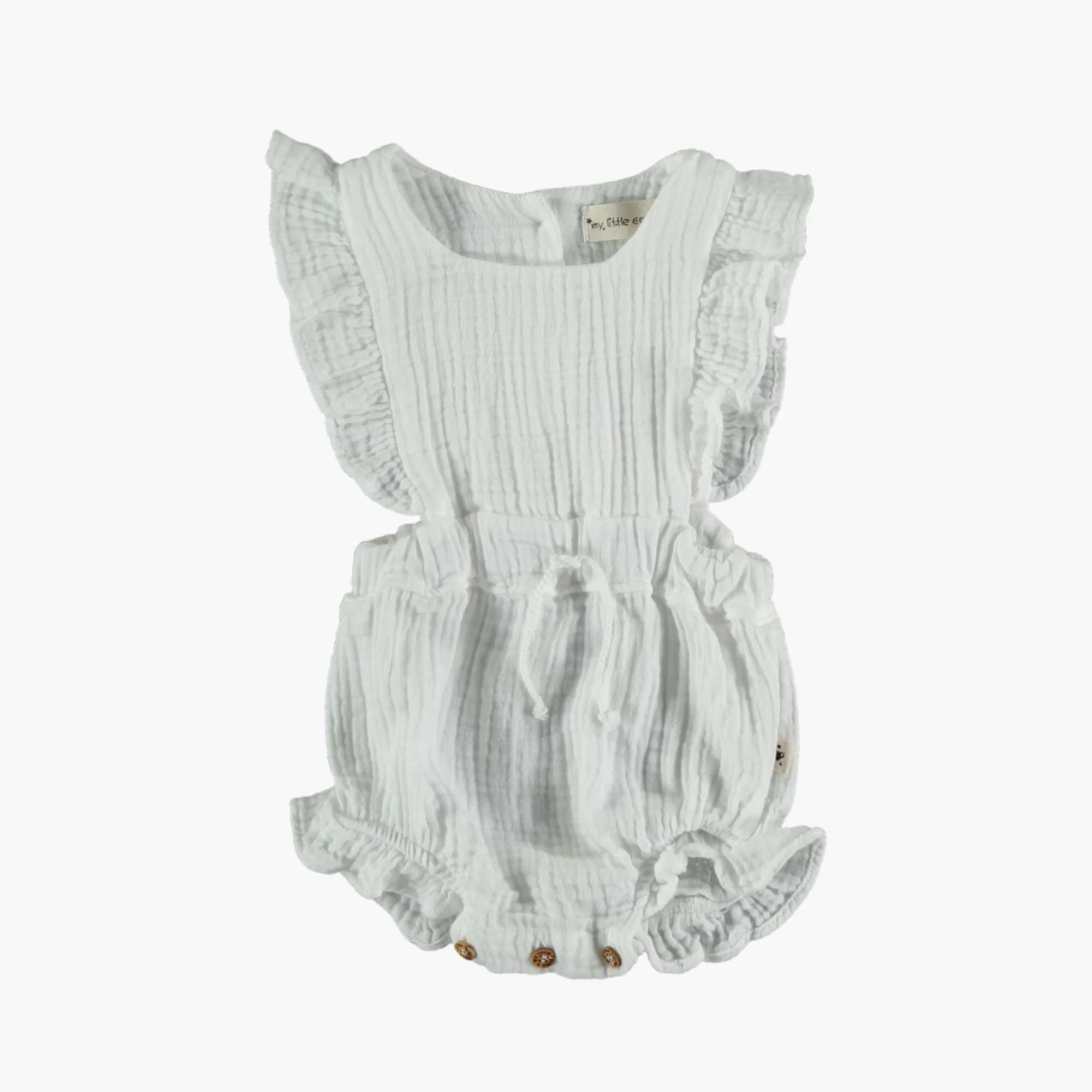 L’été, les vacances, le soleil, la plage ou même en ville.. Cette barboteuse sera parfaite pour votre petite nana. Blanc. 100% Tissus naturels Oekotex. Espagne. My Little Cozmo