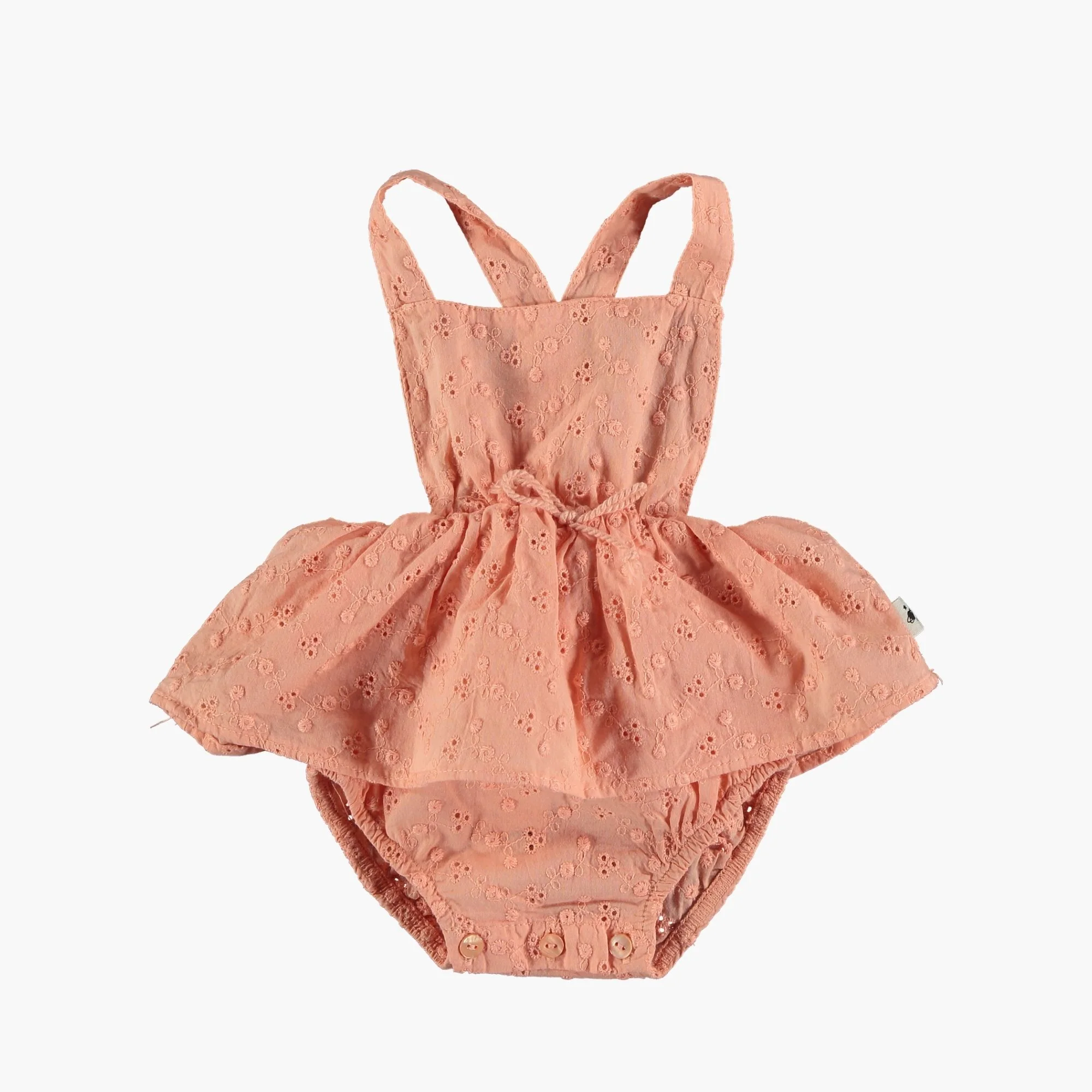 L’été, les vacances, le soleil, la plage ou même en ville.. Cette barboteuse sera parfaite pour votre petite fille. Pêche. 100% Tissus naturels Oekotex. Espagne. My Little Cozmo