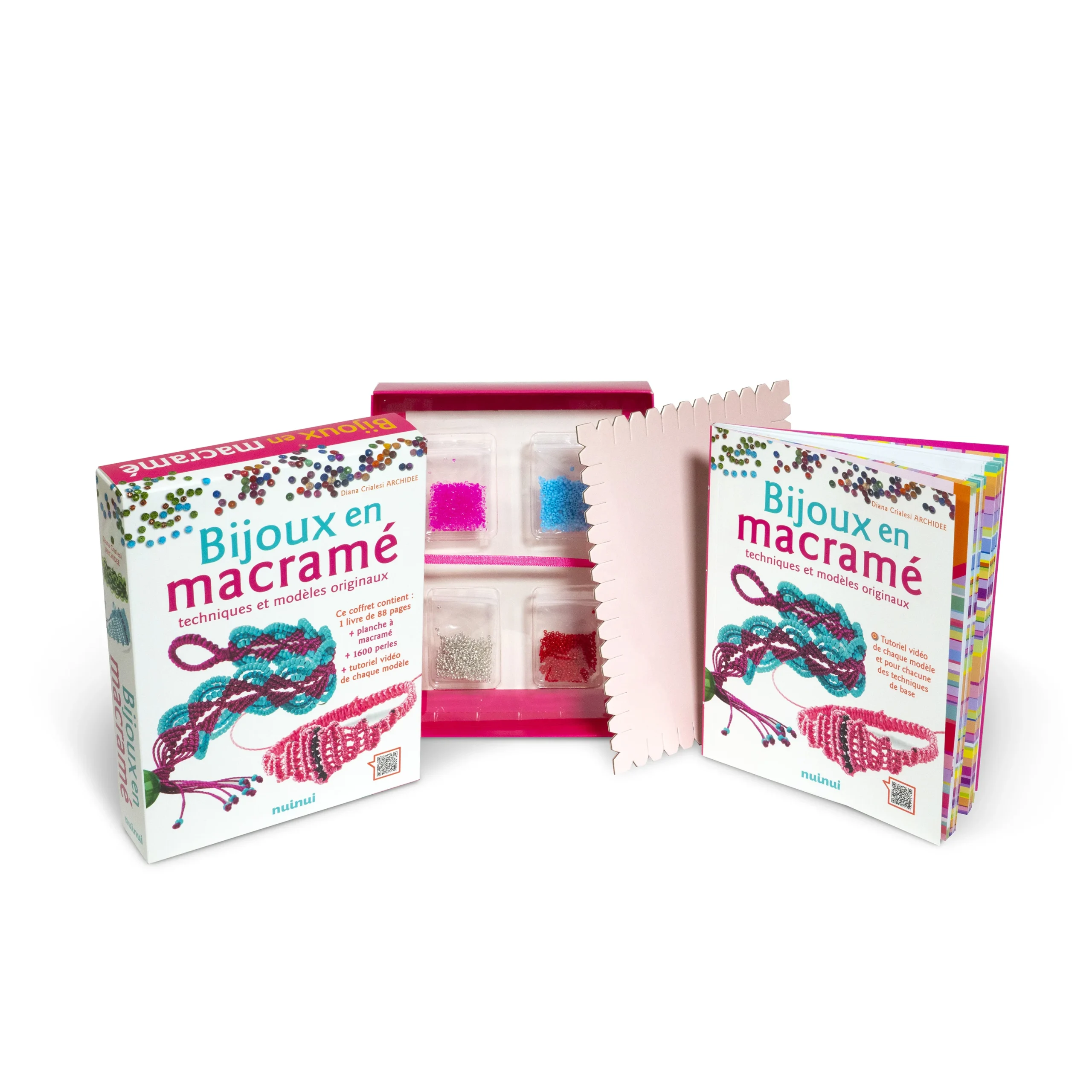 Le coffret contient un tableau en macramé, 1600 perles de couleur et un livre avec toutes les instructions pour réaliser des bracelets et des boucles d’oreilles faits main dans de nombreaux modèles à la mode. Suivez les instructions fournies et les tutoriels vidéo qui peuvent être consultés en ligne également par le biais d’un QR Code, il sera facile et amusant de créer des accessoires de mode colorés de vos propres mains.