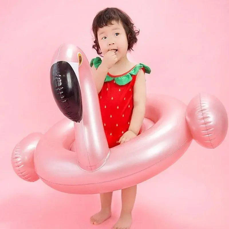 La bouée bébé flamant rose dorée, confort et divertissement