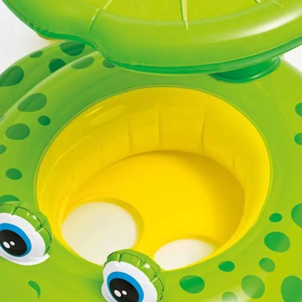 La bouee bebe grenouille avec parasol, originale et unique en son genre amusera votre enfant durant tout l’été. Dotée d’un siège robuste, votre bébé restera à flot et en toute sérénité dans sa bouée gonflable grenouille.