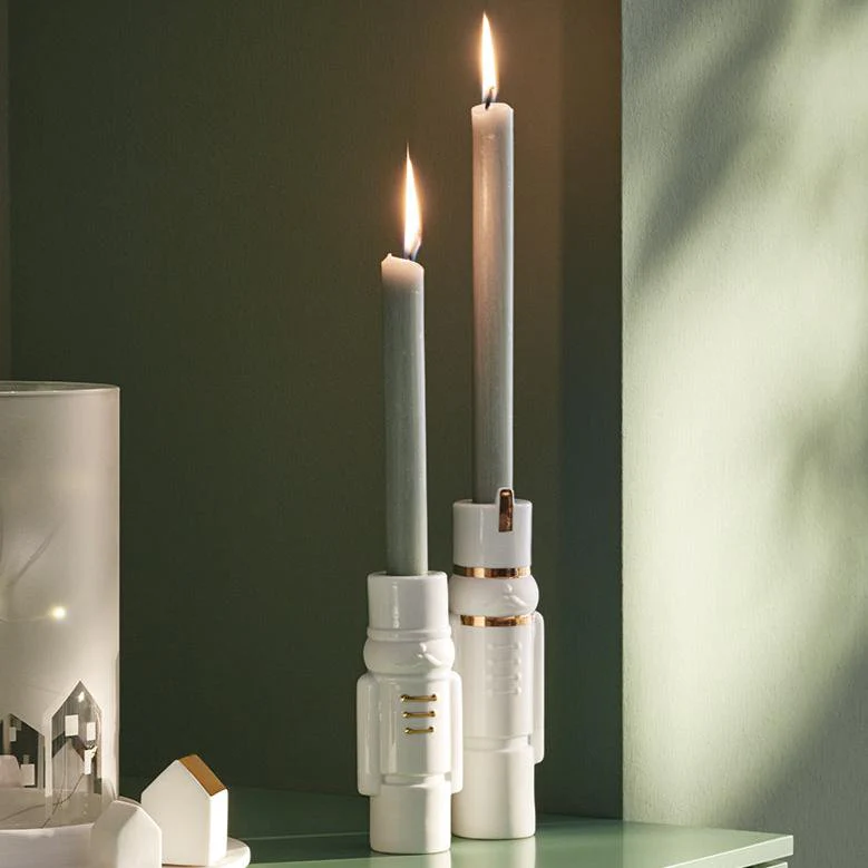 Illuminez vos fêtes de fin d’année grâce à ces adorables bougeoirs en porcelaine en forme de Casse-Noisette de Rader. Installés sur votre table de Noël ou sur un meuble pour mettre en lumière vos soirées de Noël, Linus et Magnus ajouteront une touche de magie dans votre décoration.