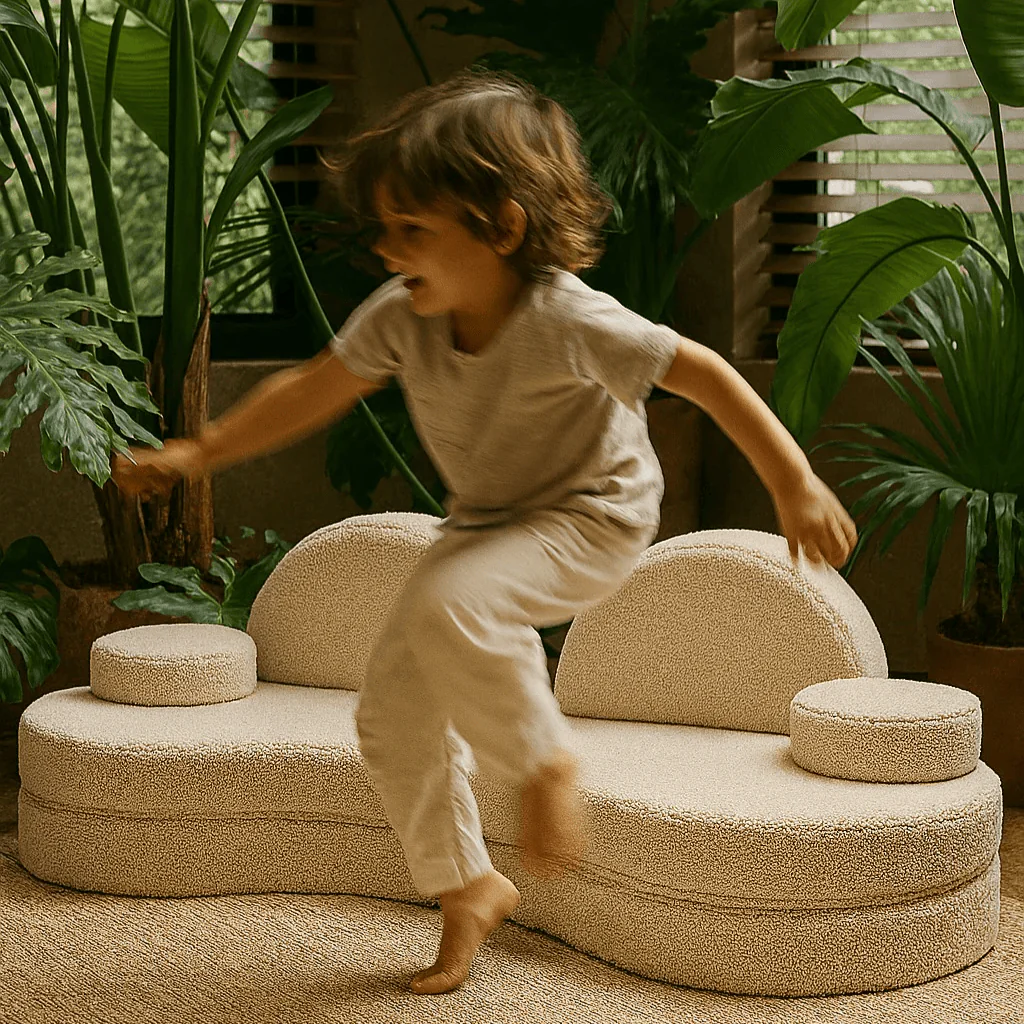 Canapé Modulable Enfant 6 Éléments « Coccolo » – Tissu Doux Dirty White