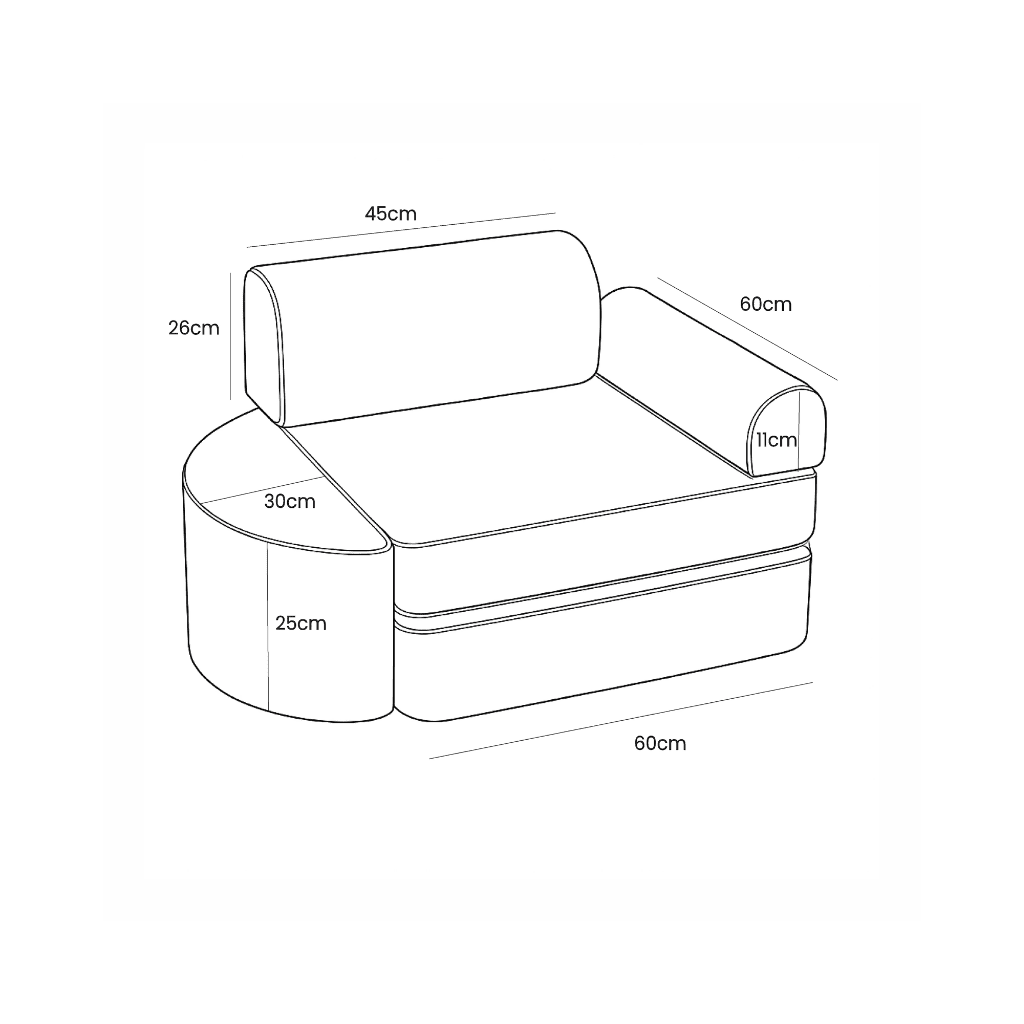 – un canapé pour enfants compact et flexible, conçu pour une utilisation intérieure