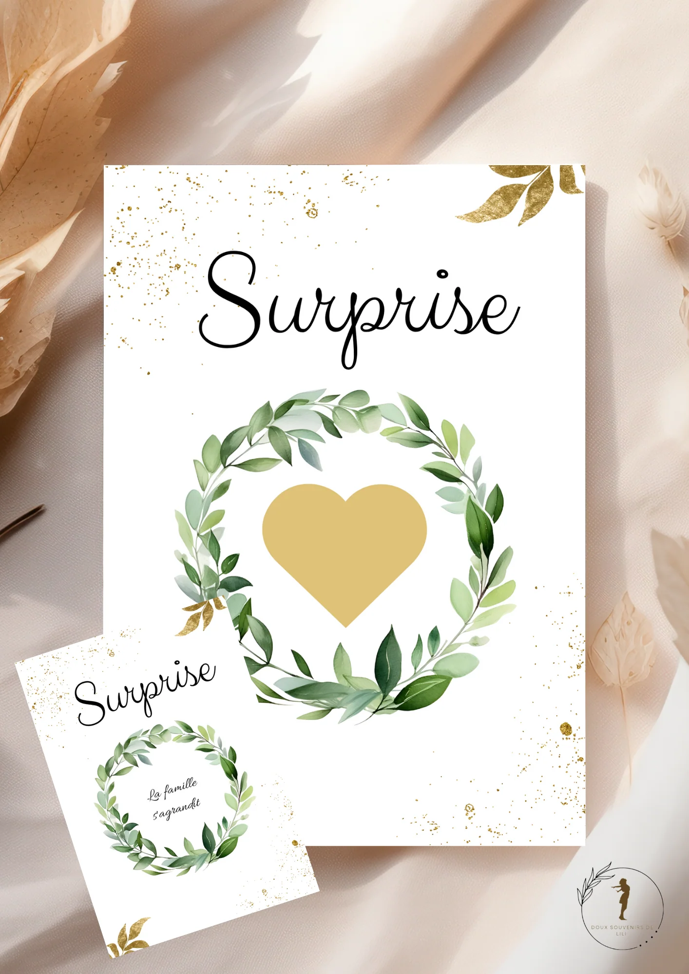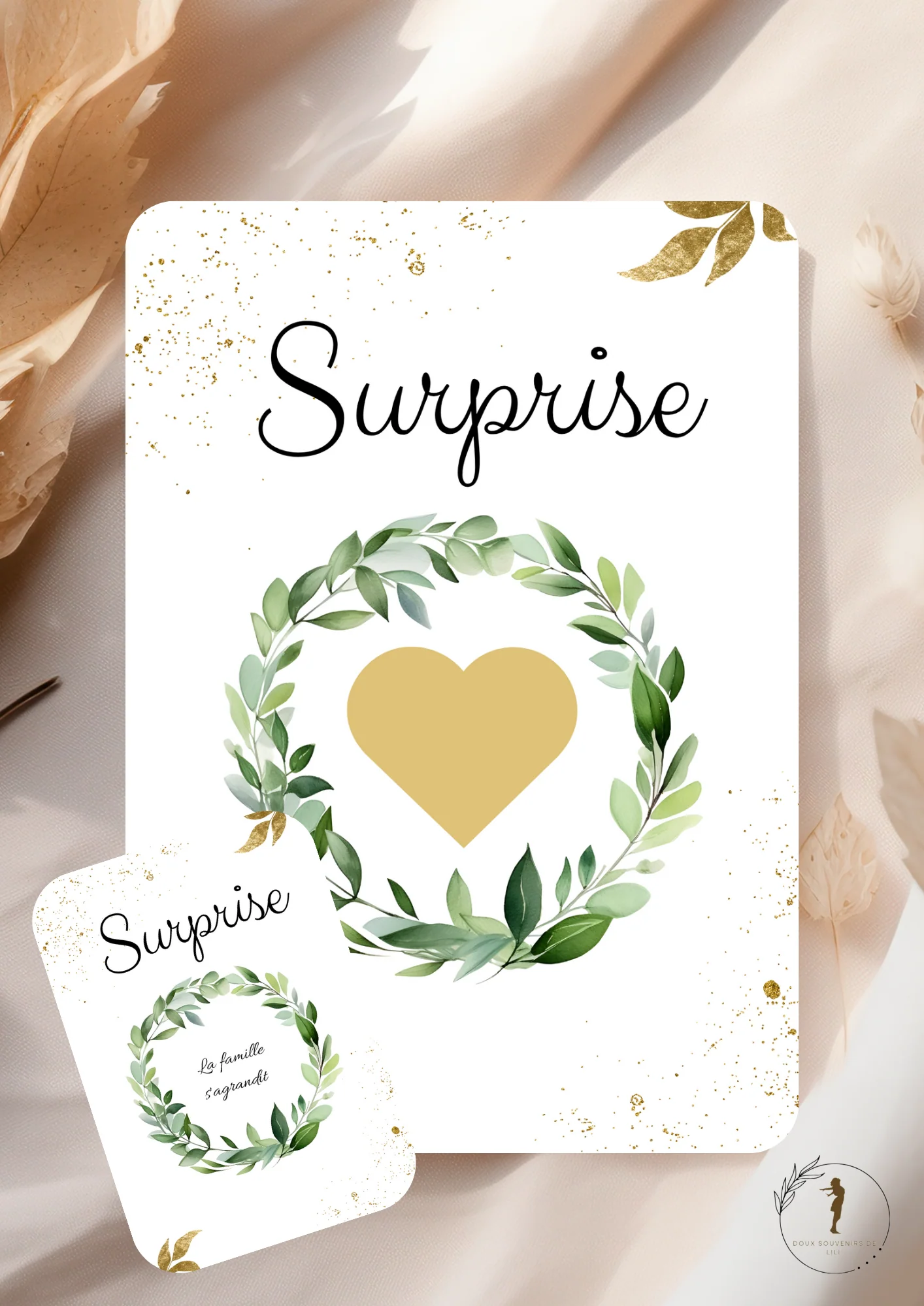 Carte avec message personnalisé au choix thème eucalyptus. – Carte version imprimée A6 + enveloppe brune détail coeur ・Impression sur du papier 300g + coeur à gratter ・Délai de traitement : 24h/48h ・ Expédition en Lettre suivie. *Format A6 Le verso de la carte est vierge pour vous permettre de personnaliser votre message d’annonce avec […]