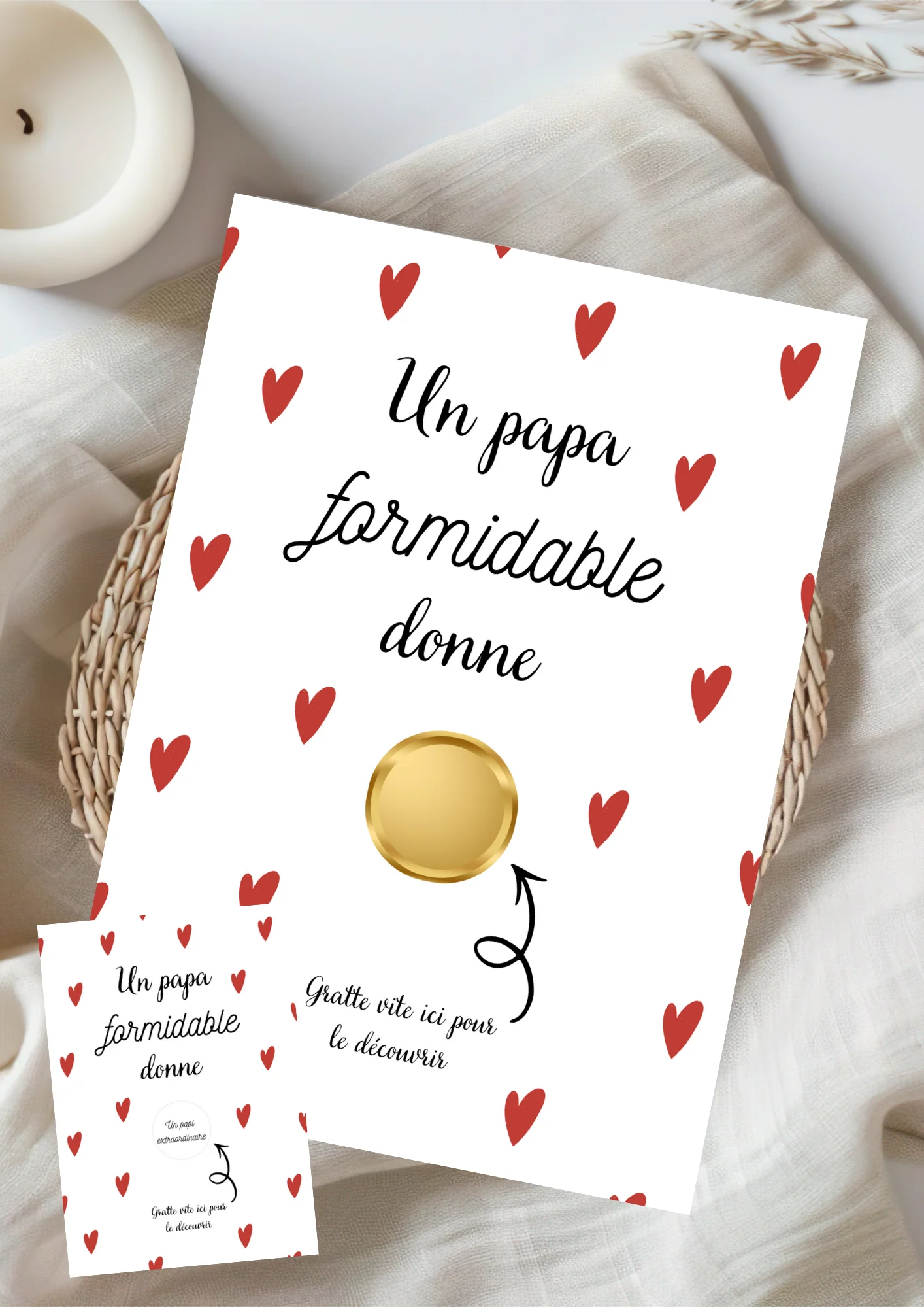 ・Impression sur du papier 300g + coeur à gratter