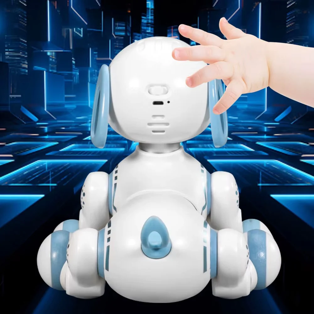 Robot Chien pour Garçons et Filles Avec une technologie avancée de détection tactile de la tête, notre chien robot FUUY répond au toucher avec des comportements réalistes comme un chien tels que les aboiements, la taille torsible, et répondre aux caresses et à l’affection. Avec 5 réglages de volume réglables et une taille torsible, le robot mignon imite les formes animales et répond aux commandes du remoteur, faire du temps de jeu une expérience interactive et éducative qui apportera de la joie et du rire aux enfants..