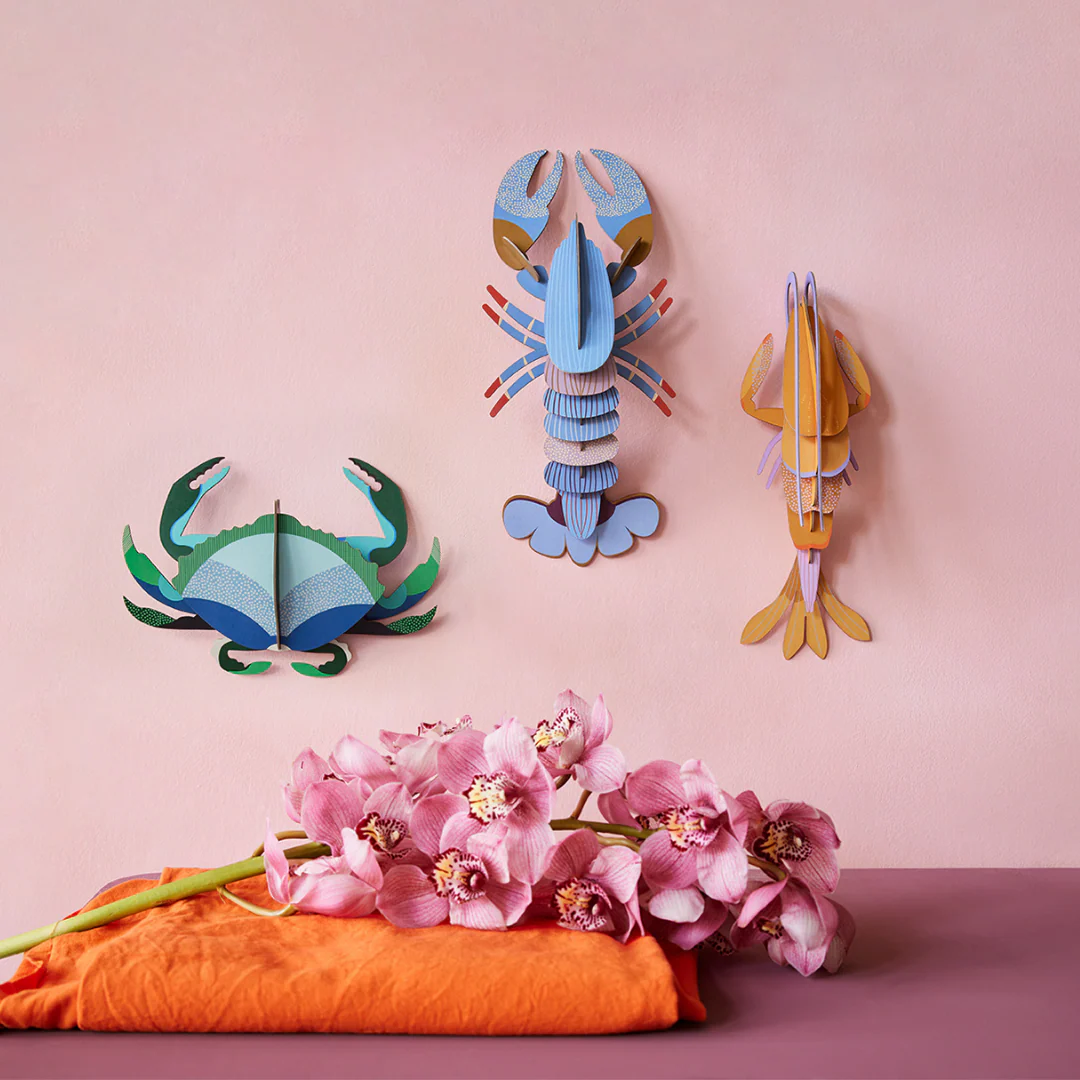 Si vous aimez la mer et ses créatures marines délicates et silencieuses, qui se cachent entre roche et corail, parmi les coquillages et les grains de sable, ce magnifique crabe vert aura le plaisir de prendre place sur votre mur. Grâce à ces jolies sculptures 3D en carton recyclé, Studio Roof nous plonge sous l’océan pour nous emmener dans l’univers mystérieux des animaux marins.