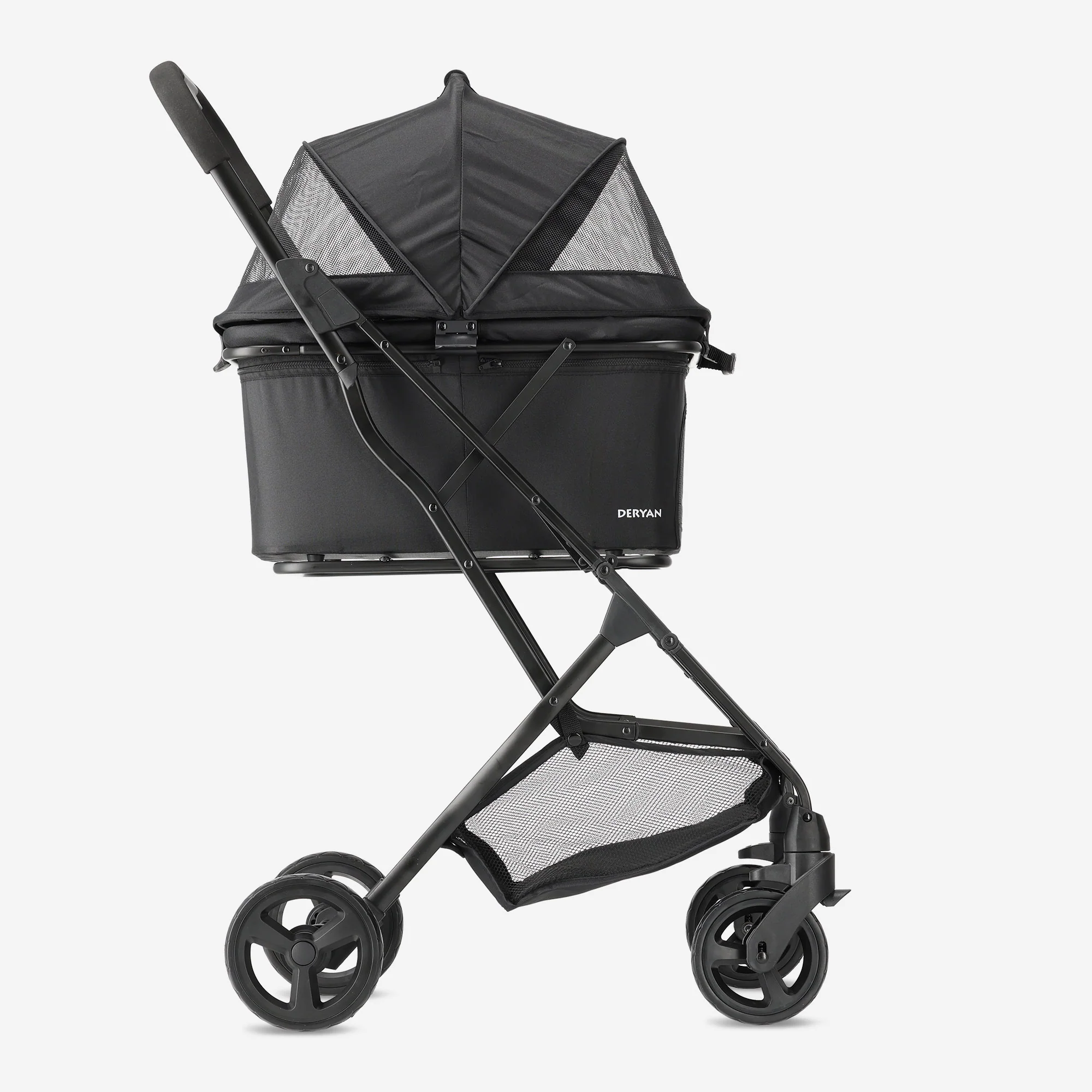 Deryan Poussette de luxe pliable pour chien – Poussette pour animaux de compagnie – Noir