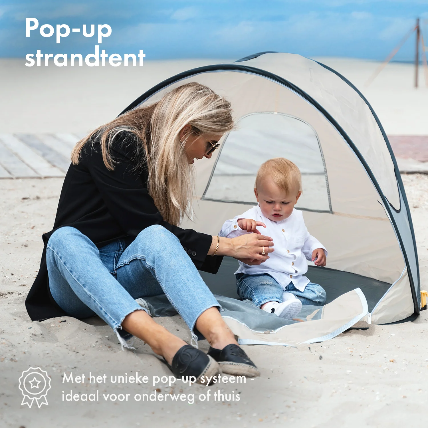 Deryan Tente de plage pop-up de luxe – Anti-UV 50+ – Crème