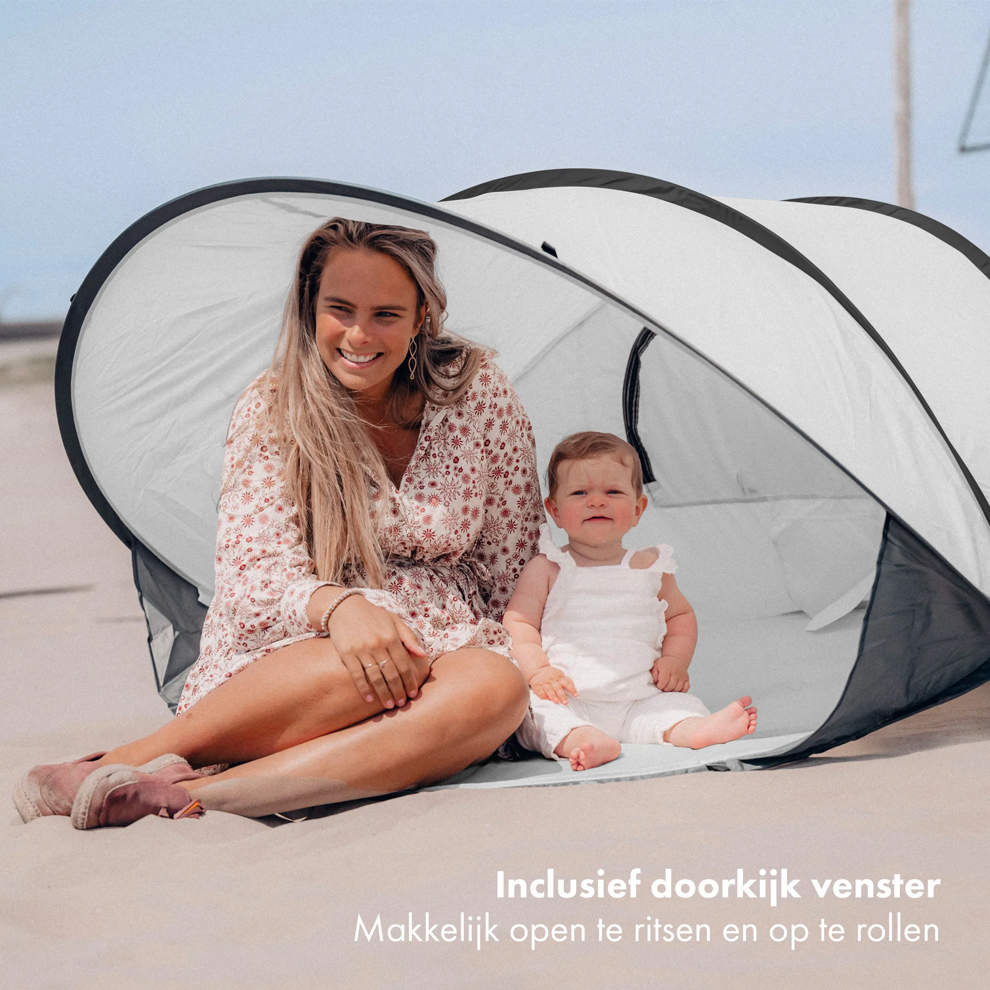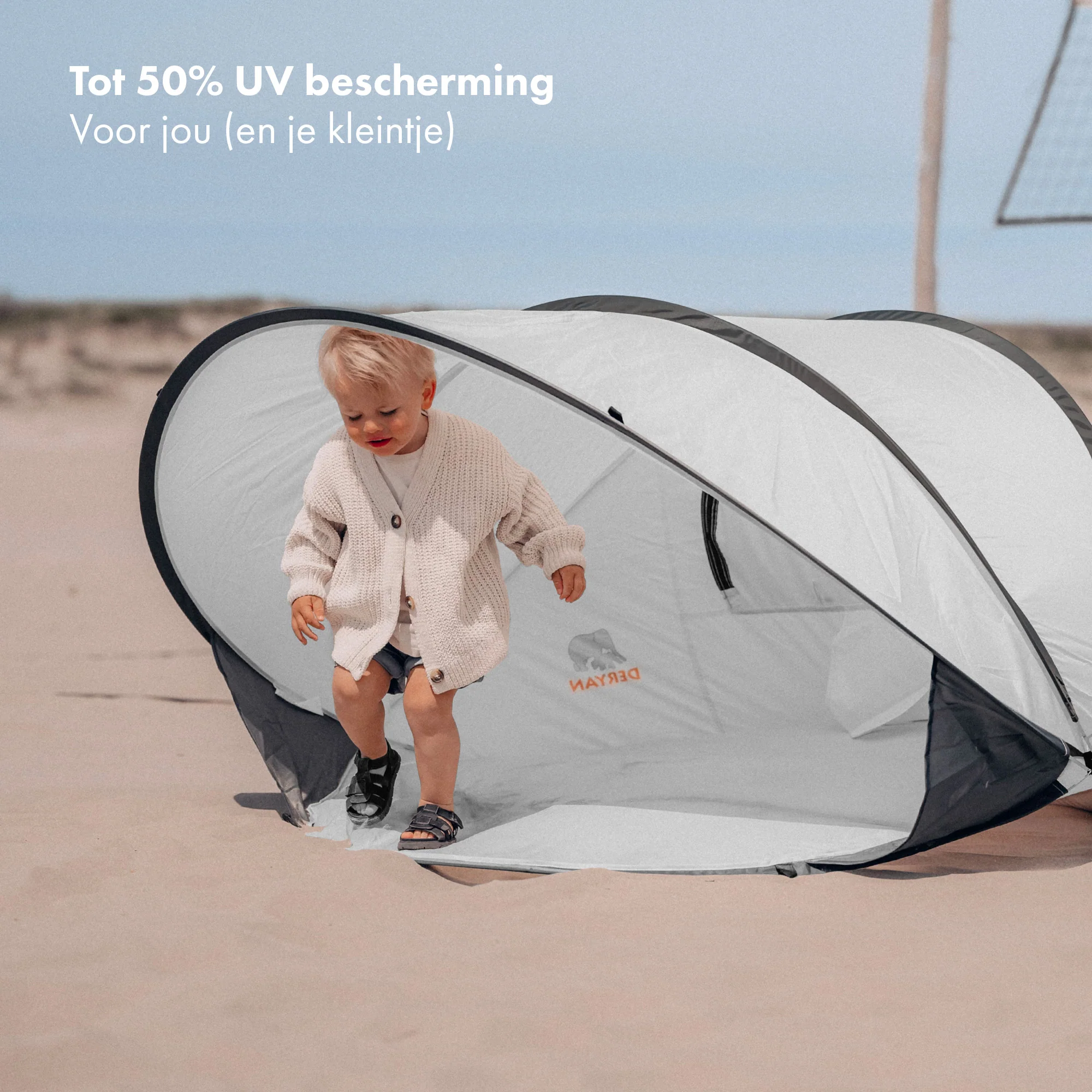DERYAN Cette tente de plage pop-up XXL, en polyester et en maille, vous protège, vous et vos enfants, lorsque vous dormez, jouez et vous détendez sur la plage !