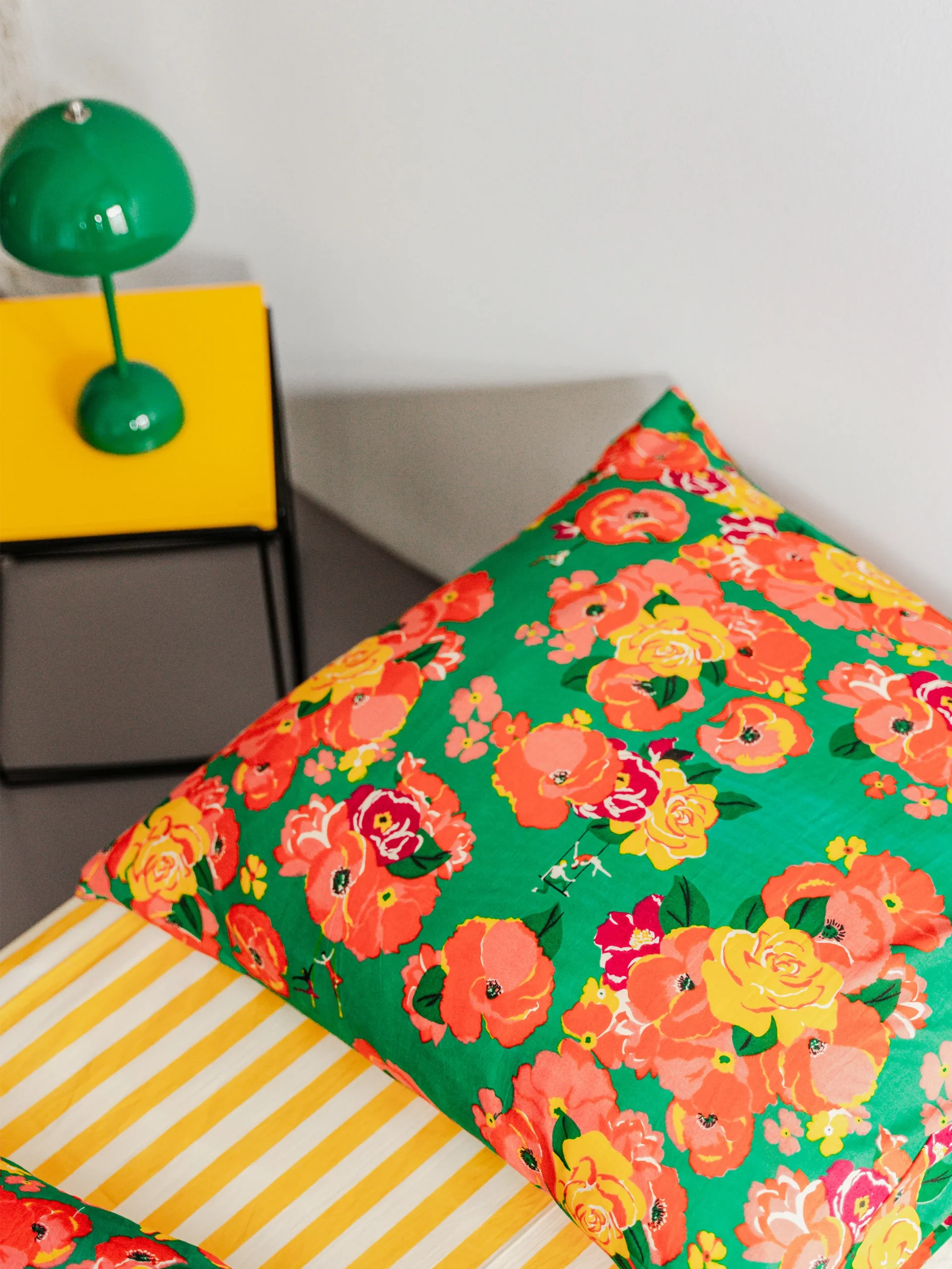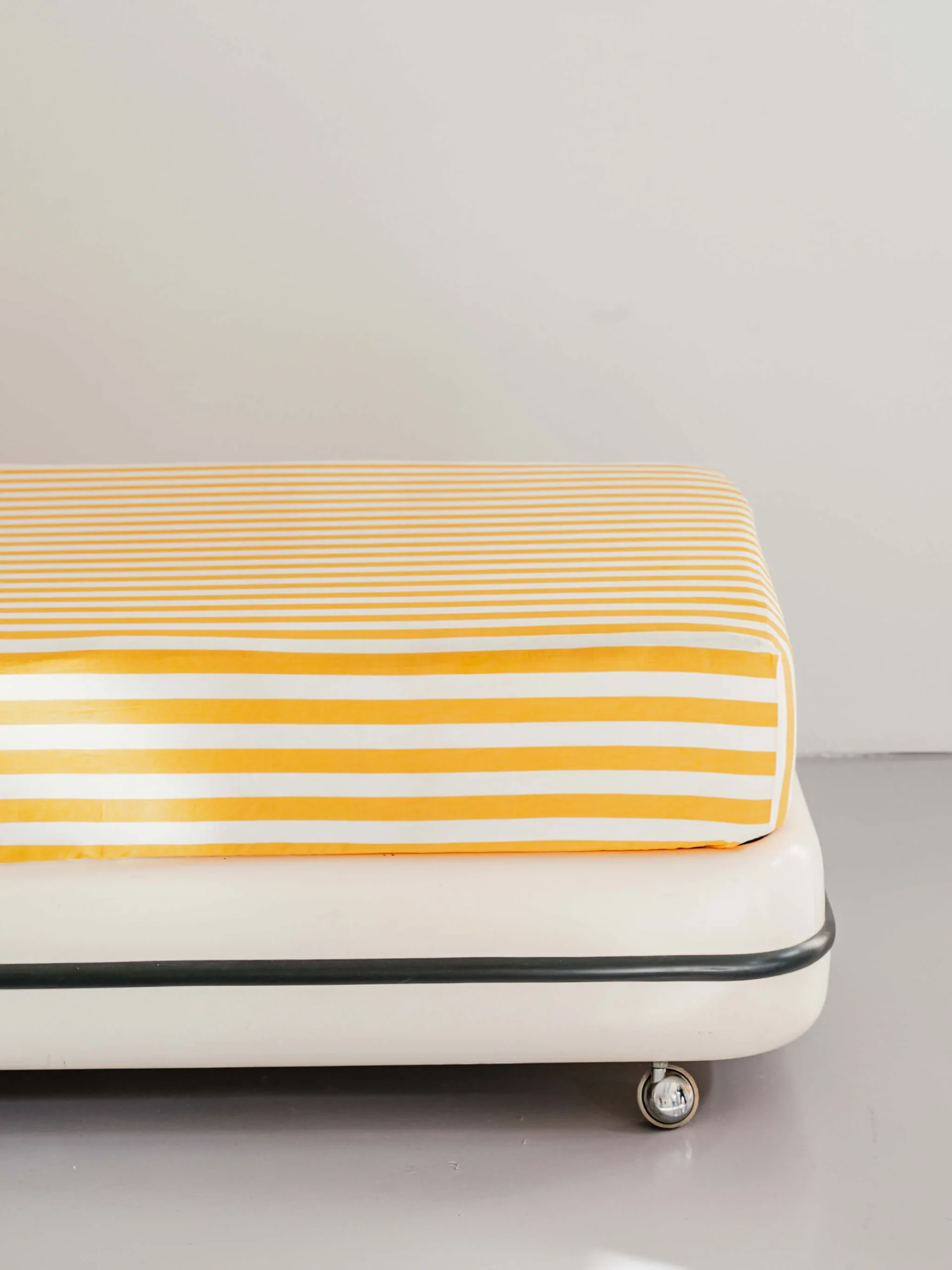 Drap housse en voile de coton léger d’une douceur à faire pâlir la percale. A motif rayé jaune sur fond blanc. Imprimée à la main selon des techniques traditionnelles. Disponible en toutes tailles de lits doubles, king size et queen size. Grand bonnet et finition élastique de 30 cm.