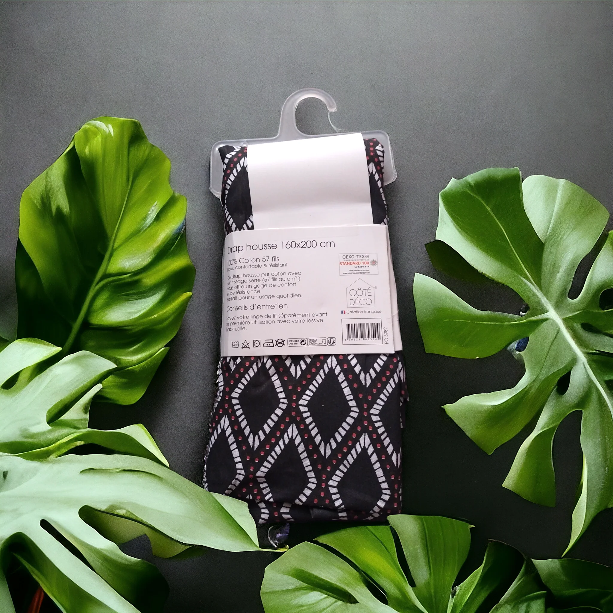 Drap housse Côté Déco, doux confortable et résistant.100% coton , 57 fils cm2 . Création française.