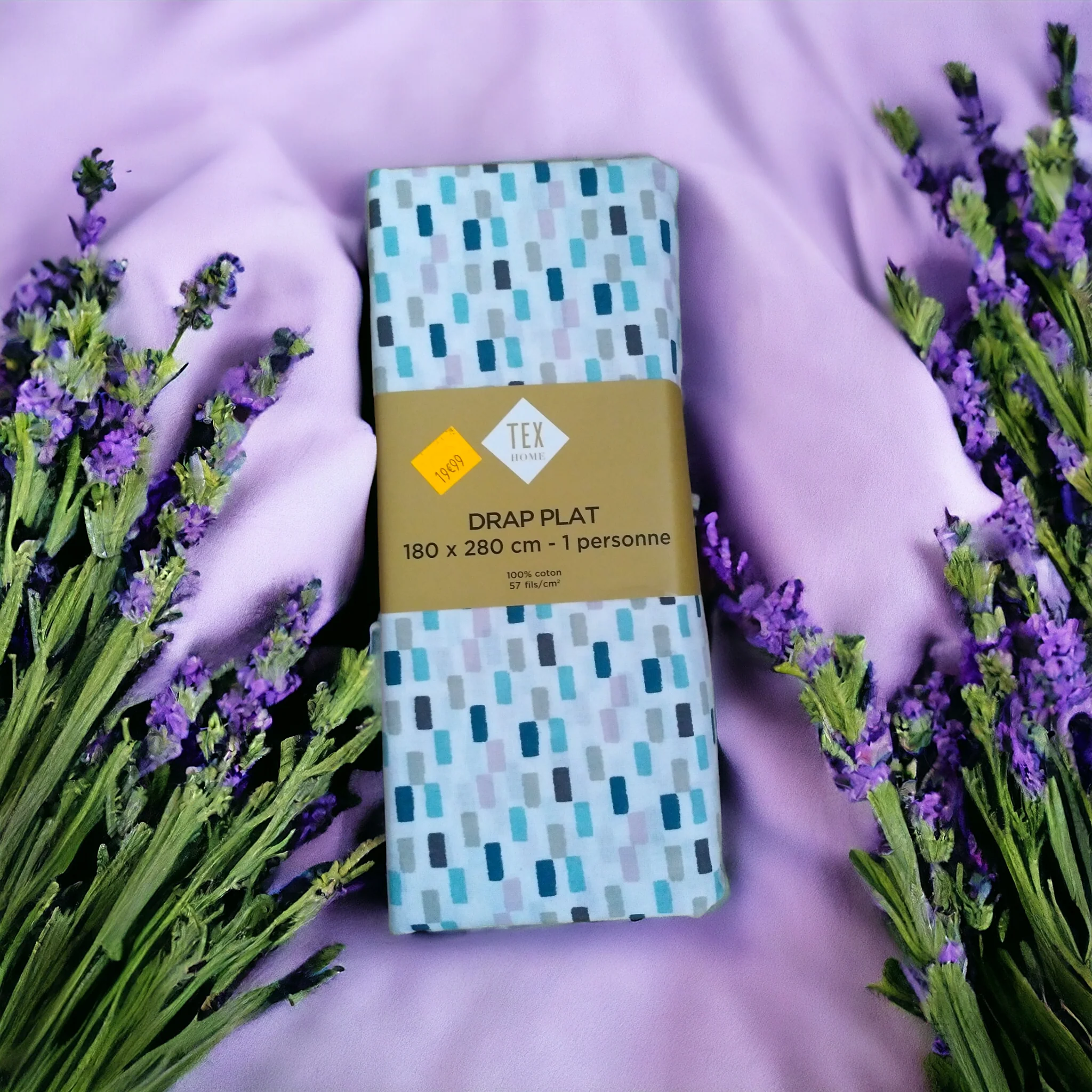 Drap plat Tex Home 2 personnes, 100% coton, 57 fils/cm2. Fabriqué Au Pakistan.