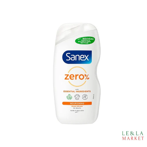 Gel douche Nourrissant Sanex Zero% pour peaux sèches a été formulé avec des ingrédients essentiels et garde la peau hydratée jusqu’à 8 heures. Le nettoyant pour le corps ne contient aucun microplastique, sulfate ni colorant.