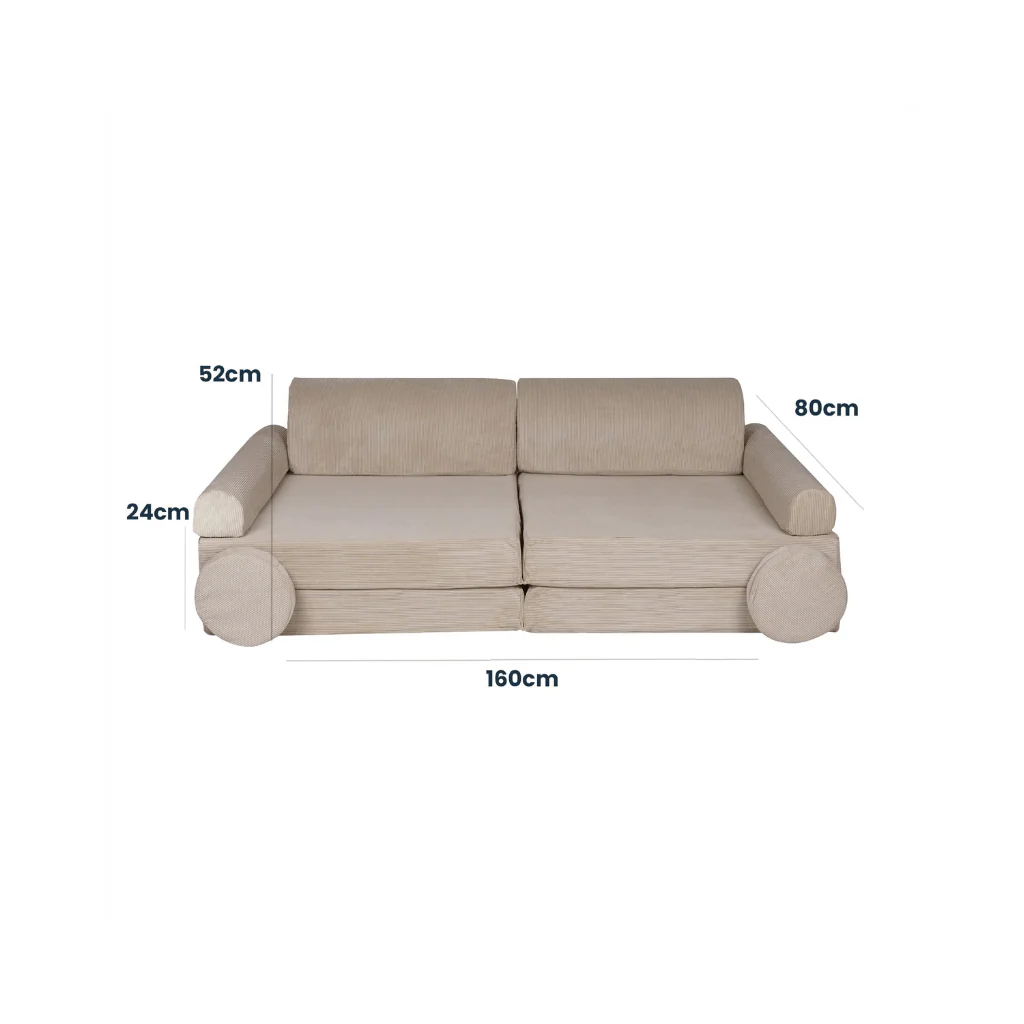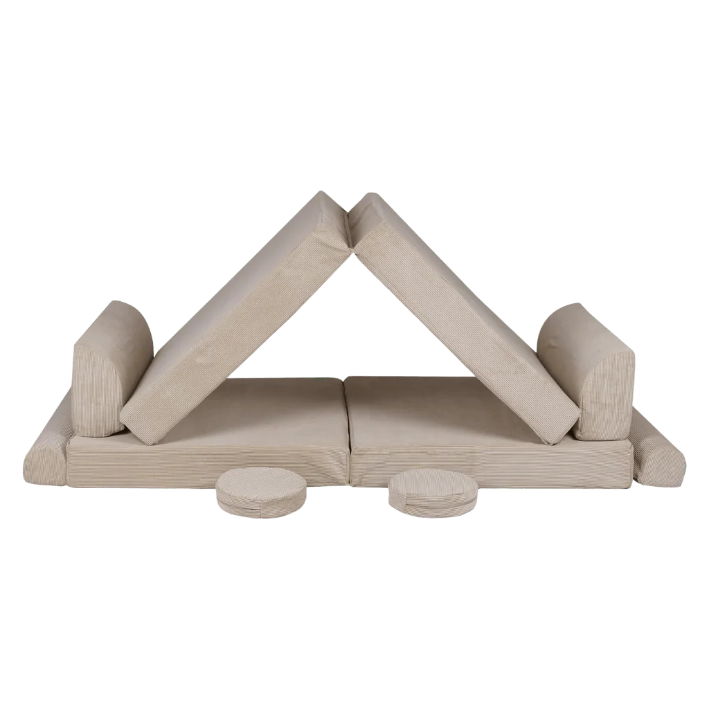 🧸 Canapé enfant modulable en velours côtelé avec 2 poufs