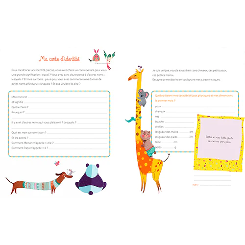 Description Un joyeux album très coloré à personnaliser entièrement avec les souvenirs et les photographies de bébé pour évoquer ses plus beaux moments. Deux grandes pochettes accordéon permettent de conserver photographies et autres précieux souvenirs de l’enfant. Des illustrations aux couleurs vives retracent les principales phases de la vie de bébé, de sa naissance à […]