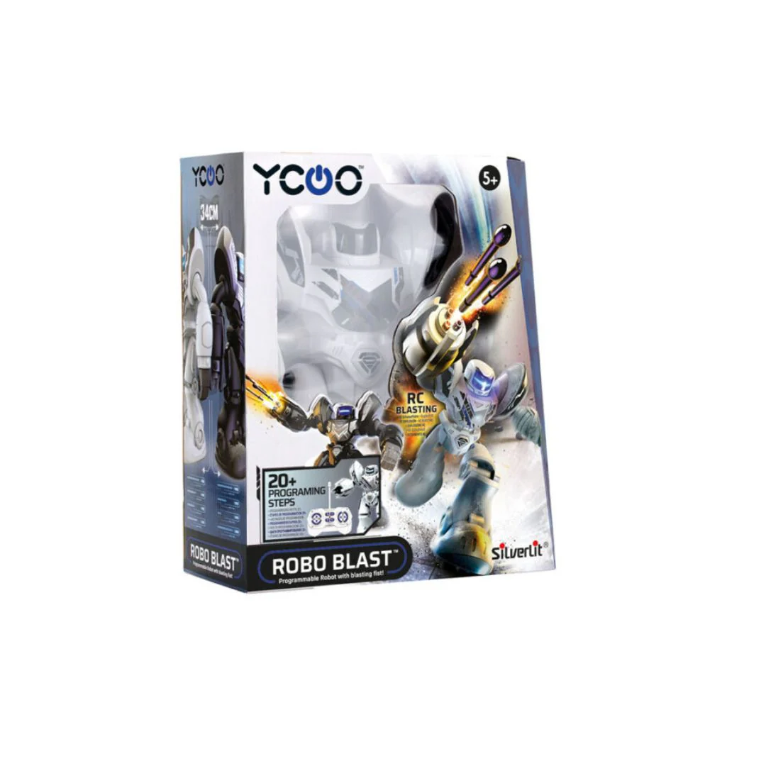 Le Robo Blast est un robot interactif imposant de 34 cm, conçu pour l’action et le divertissement. Alliant technologie et interactivité, il offre une expérience de jeu complète pour toute la famille.