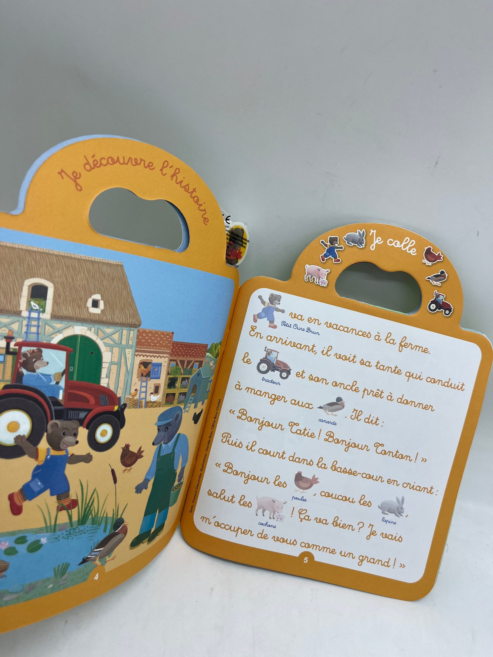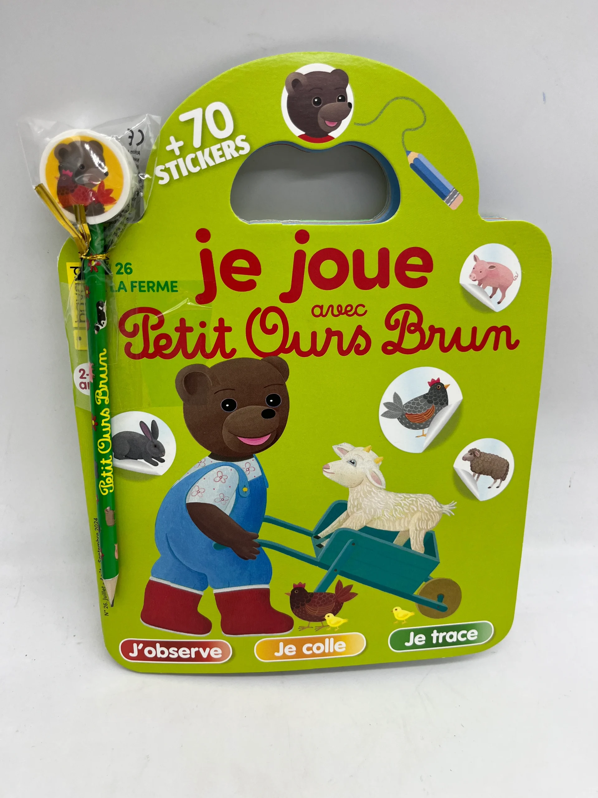 Livre d’activité Magazine Je joue avec Petit ours brun jeux histoire stickers Neuf thème à la ferme ! Jeux activité stickers