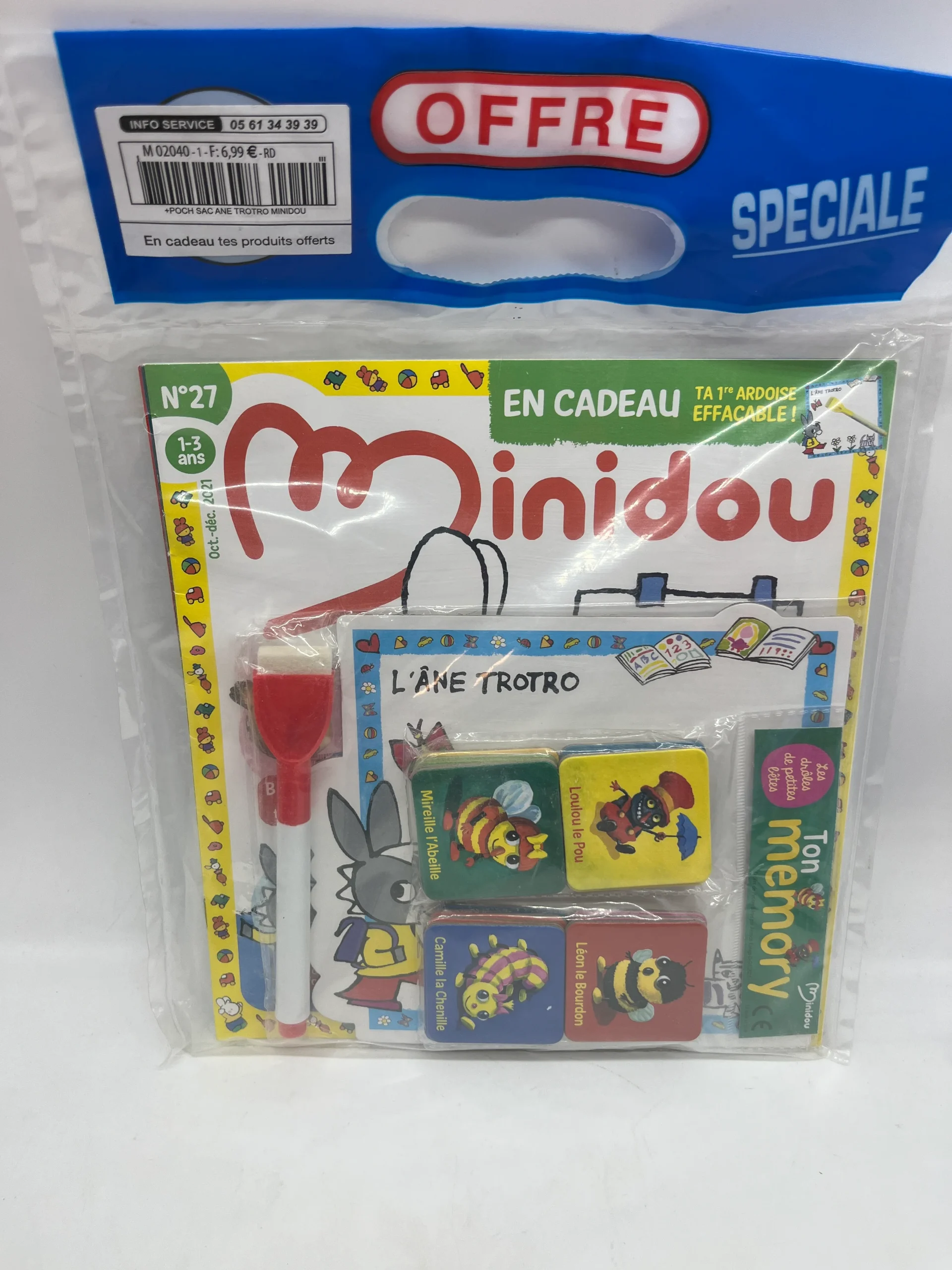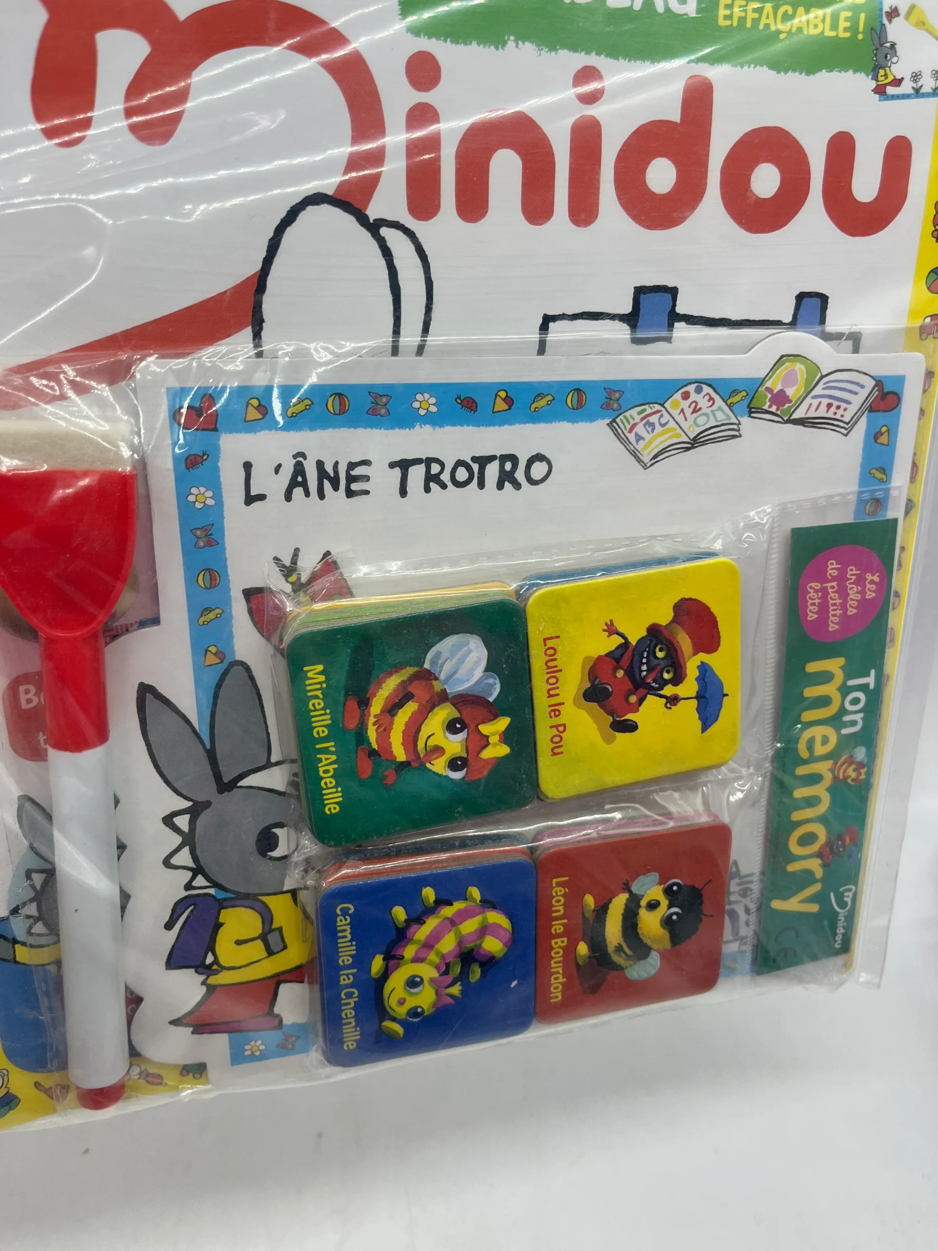 Livre d’activité Magazine x2 Minidou avec son mémo Les petites Bêtes et son ardoise effaçable ! Jeux activité stickers Jeux activité stickers Dès 2 ans Prix boutique :6€99