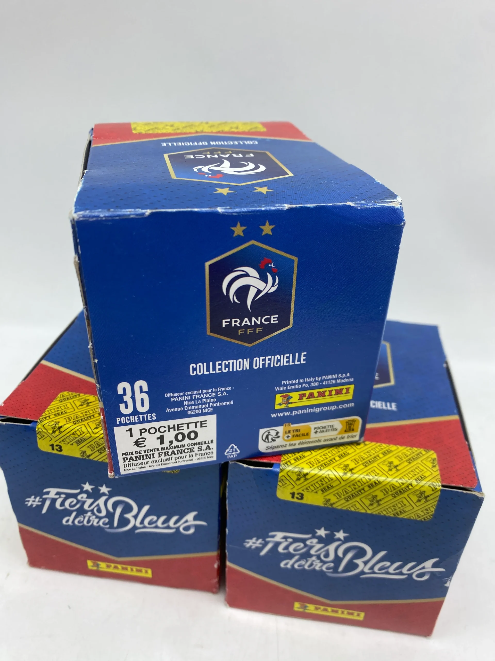 Lot de 3 boites Displays scellé Stickers Autocollant panini Fiers d’être bleus Les 3 boites sont scellé d’origine !