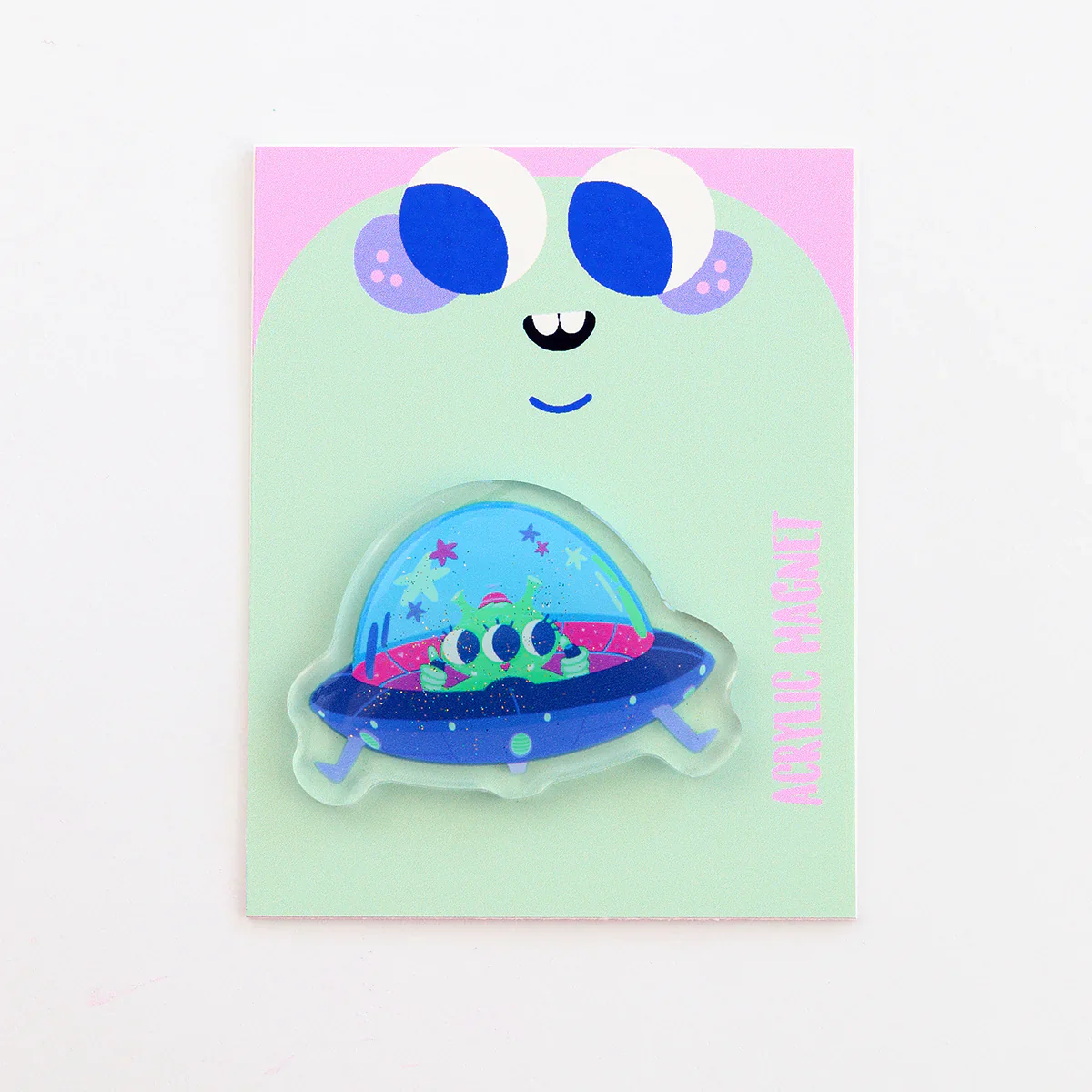 Aimant en Acrylique UFO Scintillant – Magnet Mignon à Paillettes