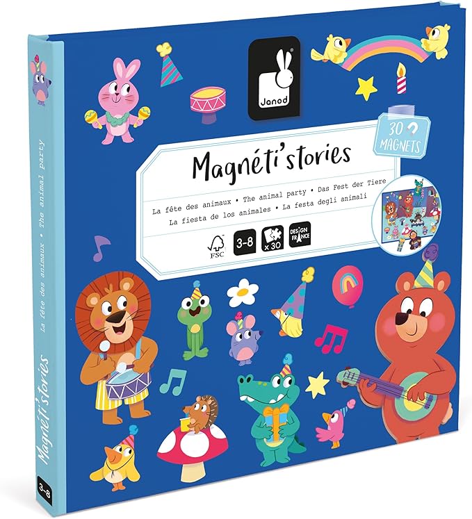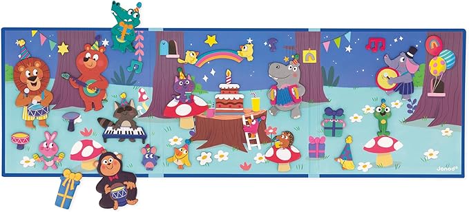 Découvrez une fête animée en pleine forêt avec le Magnéti’stories de Janod ! Ce livre magnétique en 3 parties stimule l’imagination des enfants dès 3 ans avec 30 magnets représentant des animaux festifs et des éléments de décoration.