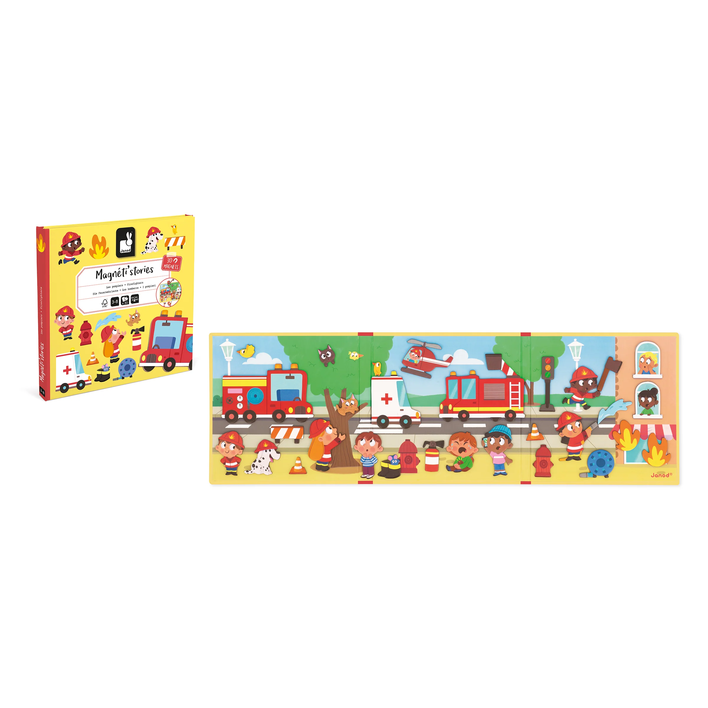 Ce jeu aimanté sur le thème des pompiers fait partie de la grande collection des Magnéti’stories, de véritables invitations à l’imagination. Ce jeu magnétique est composé de carton certifié FSC™ ainsi que de matériaux contrôlés.